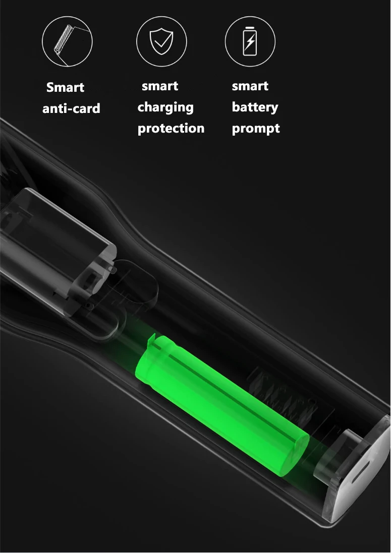 ● Он имеет два больших модуля управления энергией и управления двигателем, которые могут гарантировать высокоскоростную работу и отсутствие застревания волос при низком заряде батареи