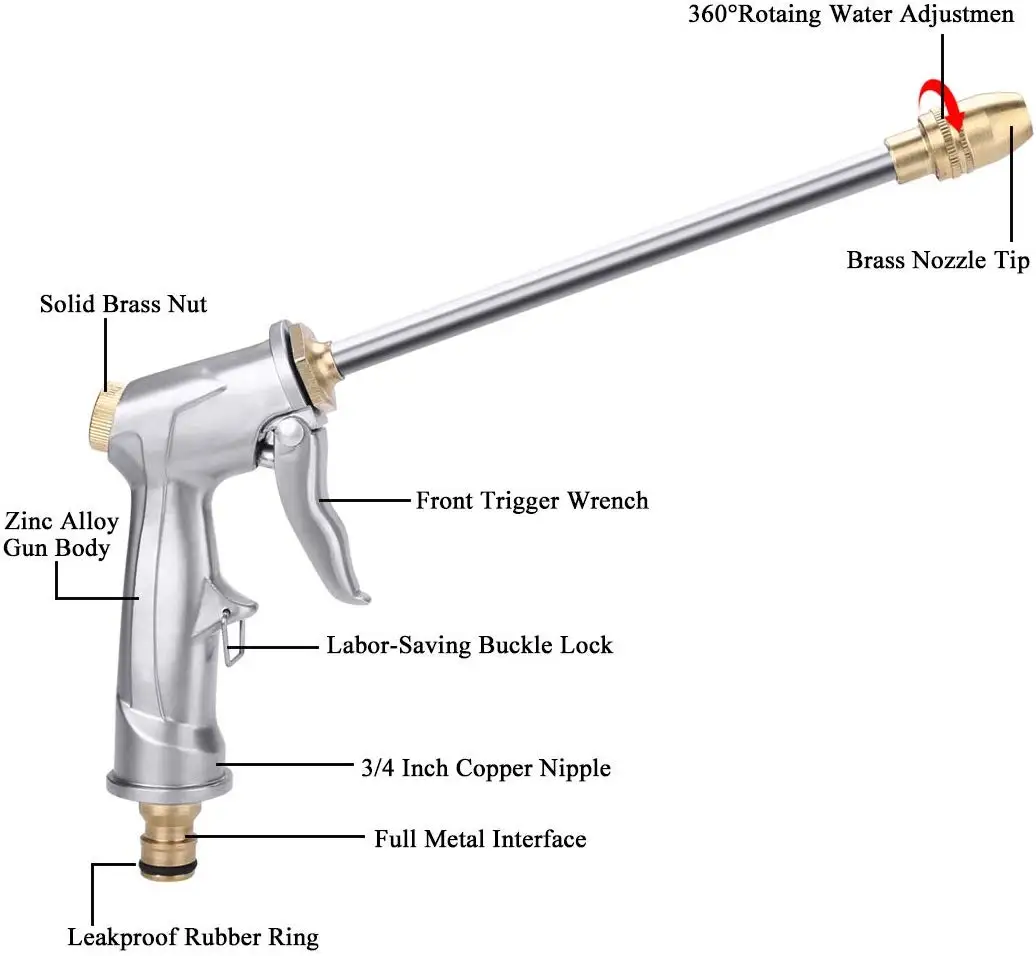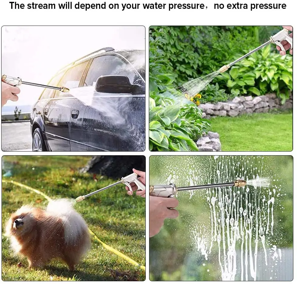 Дизайн делает вашу жизнь проще: Новый Разработанный расширяемый водяной шланг не будет tang, twist или kink. Когда закончите, просто перемотайте его в корзину или вешалку для шланга. Легкий, складной и легко хранить, что делает вашу жизнь проще. Выдвижной шланг для различных целей: Быстрое расширение, гибкая длина и правильный поток воды для поддержки различных приложений, таких как Садоводство, полив, автомойка/Стирка, купание домашних животных или Чистка бассейна, восстановив свою первоначальную длину за считанные секунды, это невероятный шланг, о котором вы никогда не пожалеете. Пистолет высокого давления с распылителем в нескольких режимах распыления для мытья вашего автомобиля, полива растений и цветов в вашем саду и лужайке, очистки дорожек/подъездных дорожек, чистящий пол/балкон/стекло и в любом месте, где вы не можете приблизиться, даже используется для душа ваших питомцев и собак, удовлетворяет ваши различные потребности в поливе и очистке, Просто наслаждайтесь стиркой, уборкой и поливом. Высокое качество для более длительного срока службы: двойная латексная подкладка завернута в новейшую, самую прочную, переплетенную растягивающуюся ткань с 1/2 "американским стандартом фитинги из цельной латуни. Наши шланги были протестированы на прочность для 1800-2000 применений. Типичный шланг только 200-250 раз при давлении воды 145 фунтов на кв. дюйм/10 бар, больше не трескается, трескается, просочивается или подвержен коррозии, пришло время попрощаться со старым утекающим шлангом! Медь-покрытием водяной пистолет с 6 вариантов рисунка в поддержку в соответствии с вашими различными полива целей, простых в использовании и более прочным, чем обычные устройств для насадки.