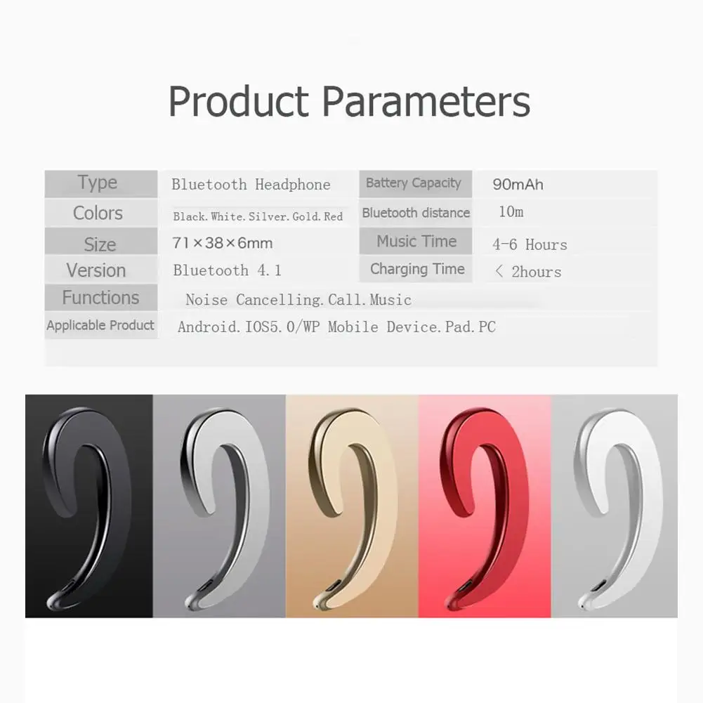 ![]() Характеристики: Модель: Y-12 -Совместимая версия: 4,1 Голосовая дорожка: стерео Протокол поддержки: A2DP1.3/HFP1.6/HSP1.2/AVRCP1.6/D11.3 Bluetooth-Совместимость с операционными Диапазон частот: 2,4 ГГц Расстояние передачи данных, совместимое с Bluetooth: 10 метров Емкость аккумулятора: 90 мАч литиевая батарея Время работы в режиме ожидания: 160 часов Время вызова/воспроизведения: около 5 часов Время зарядки: 10 минут Цвет: черный, белый, синий, красный, зеленый Примечание: Возможны отклонения в 1-3 мм вследствие измерений вручную. Из-за различных дисплеев и различного светильник, изображение может не показать фактический цвет товара. Спасибо за понимание. ![]() 1 X наушники с костной проводимостью Зарядное устройство-1 шт. 1 X Руководство пользователя