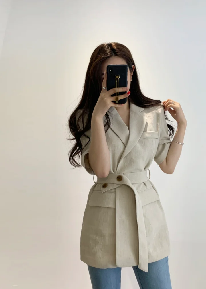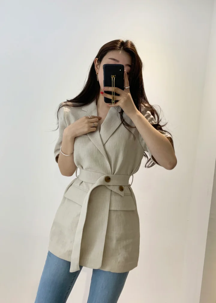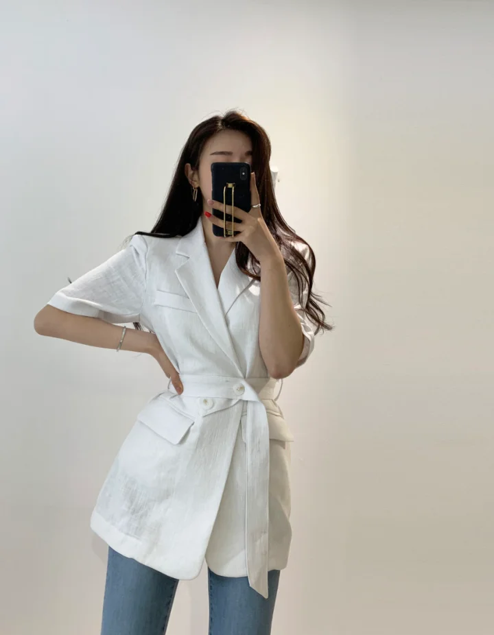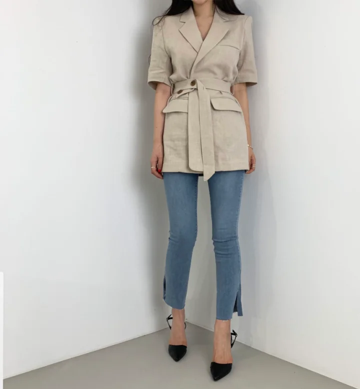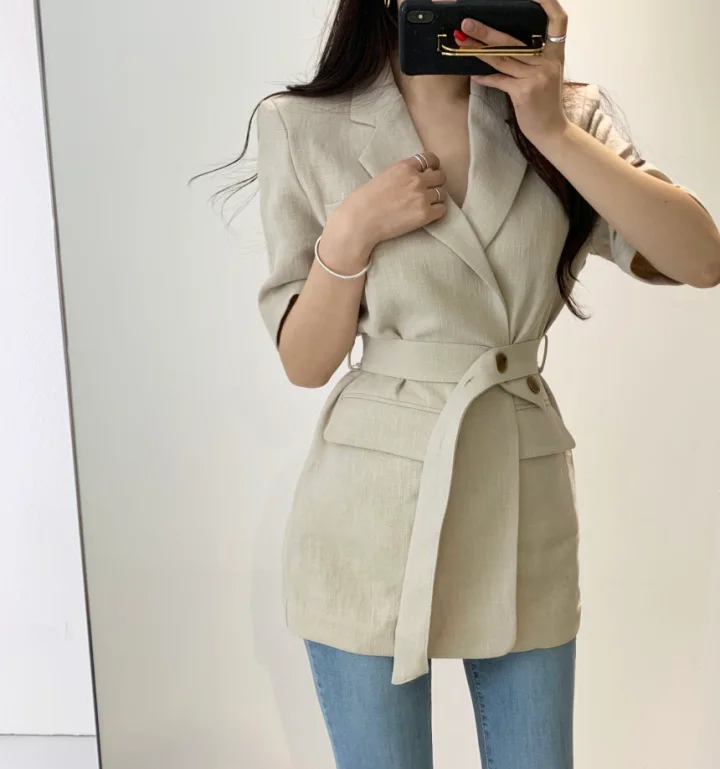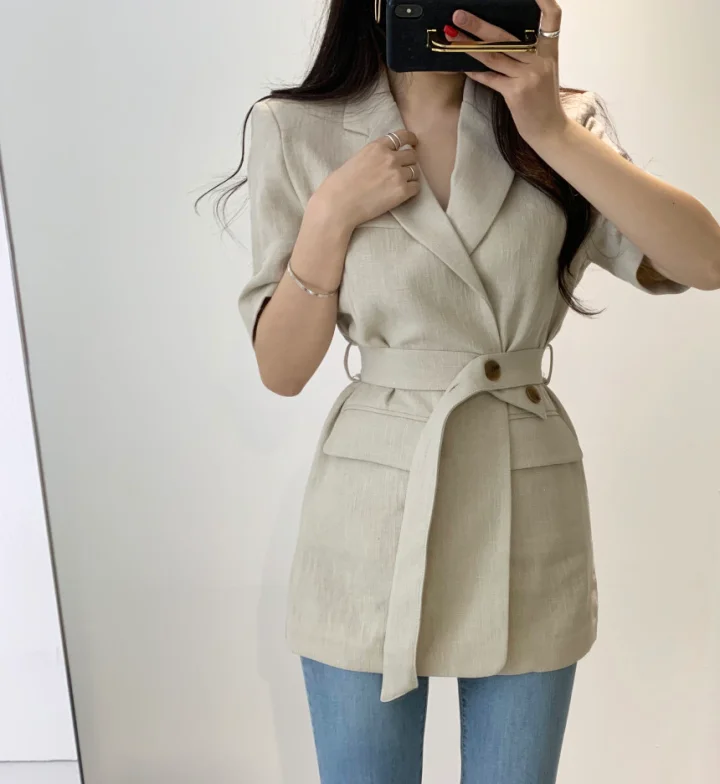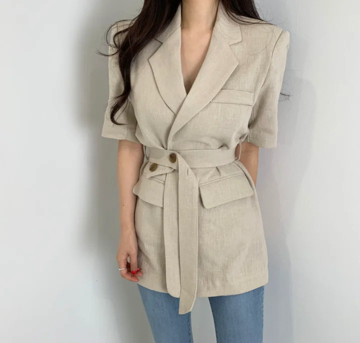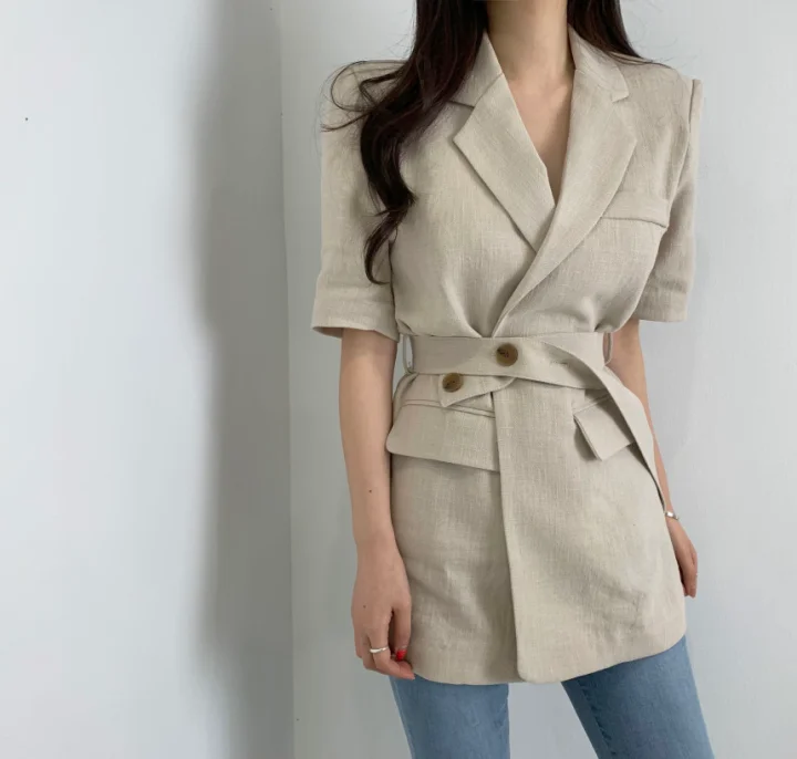 Женский свободный однотонный минималистичный офисный костюм жакет топы с поясом