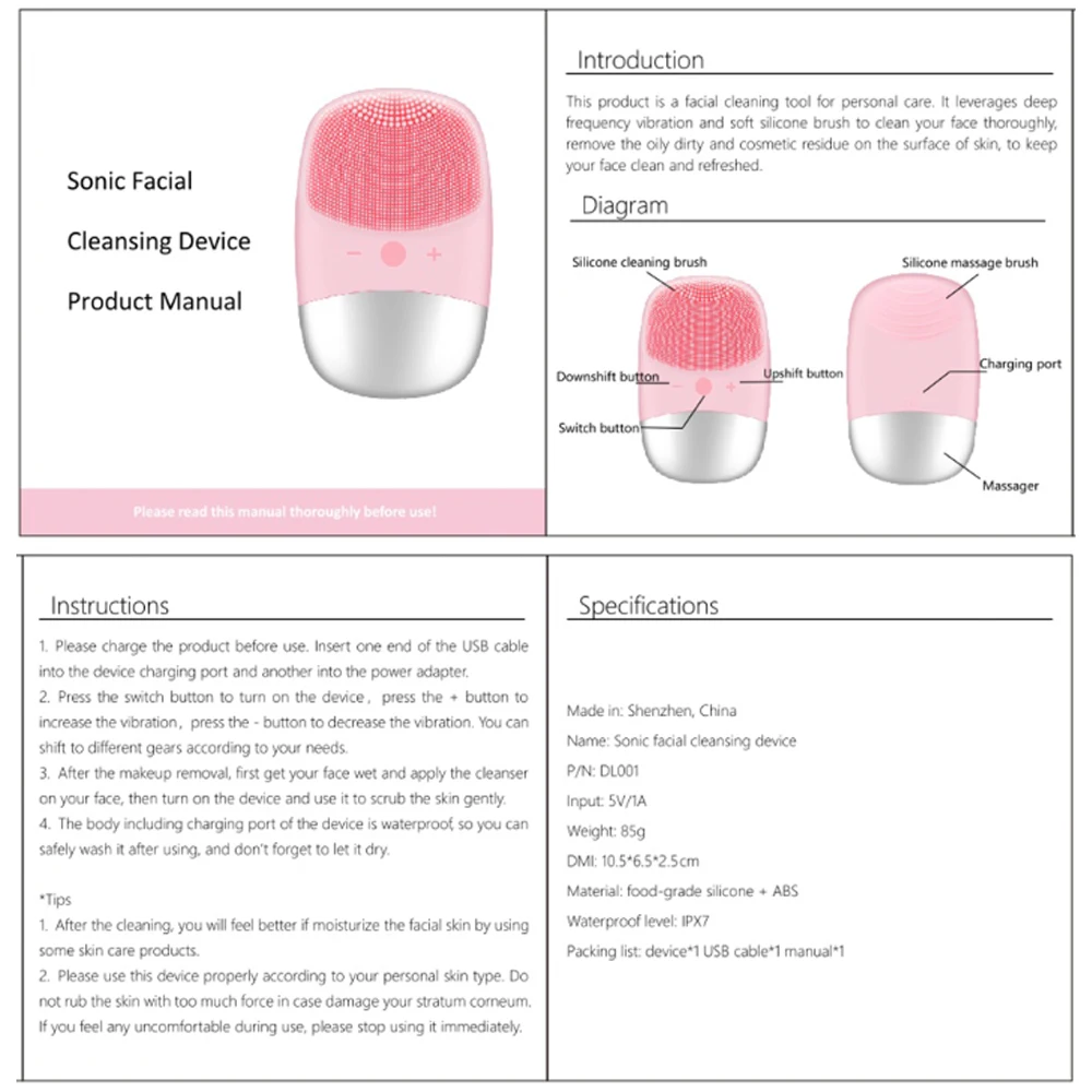Название продукта: Ультразвуковое ионное моющее средство Модель продукта: JD-CP001 Батарея: 3,7 V Емкость аккумулятора: 500 мАч Рабочее напряжение: 3,4-4,2 V Номинальная мощность: 1,5 V Вход напряжение: 5VDC Размер продукта: 170x42x18mm Частота вибрации: 24000 раз/секунду Описание: 1. Высокочастотная Вертикальная ТРАНСДЕРМАЛЬНАЯ волновая пульсация, встряхните грязные вещи, дайте порам снова дышать, кожа гладкая и деликатная выделиться. 2. Этот продукт имеет хороший водонепроницаемый эффект и может использоваться для купания и принятия душа. 3. Эффективно удаляет излишки масла с лица и удаляет прыщи и угри внутри пор. 4. Изготовлен из высококачественного силикона, бережного ухода за кожей. 5. Звуковая вибрация, с эффектом массажа, может эффективно успокоить кожу и сделать кожу более нежной