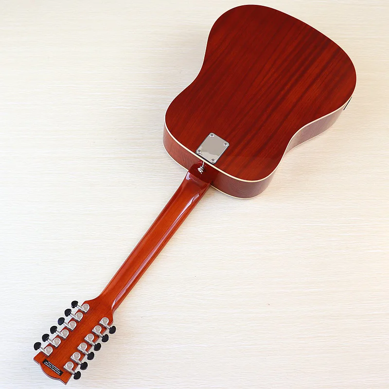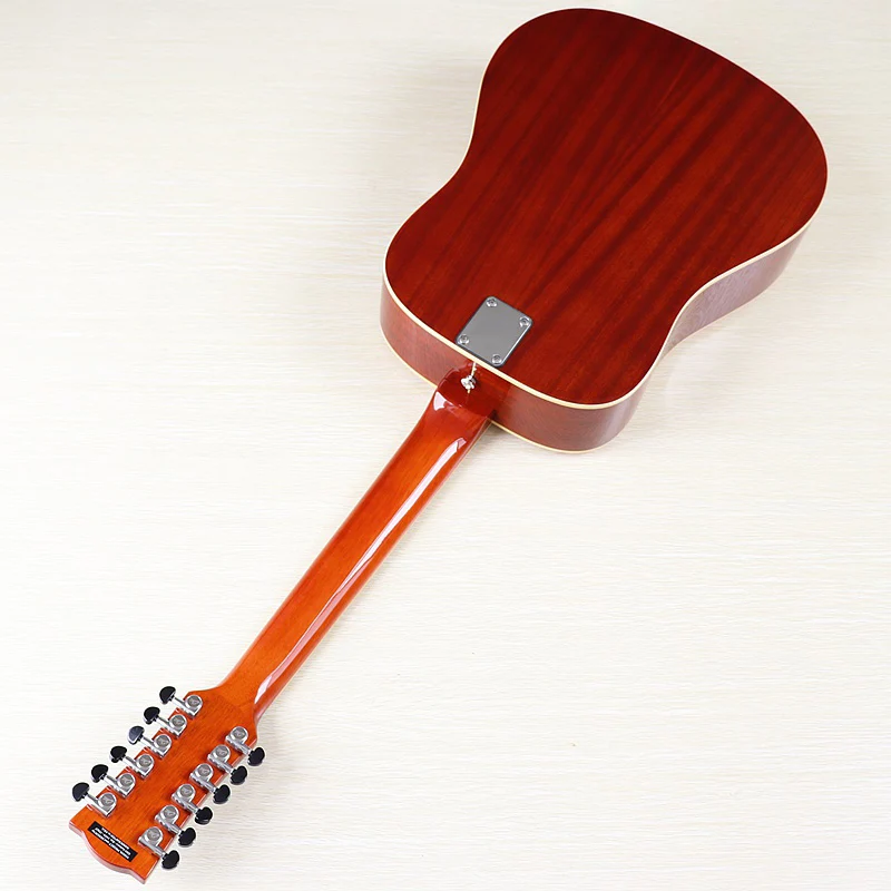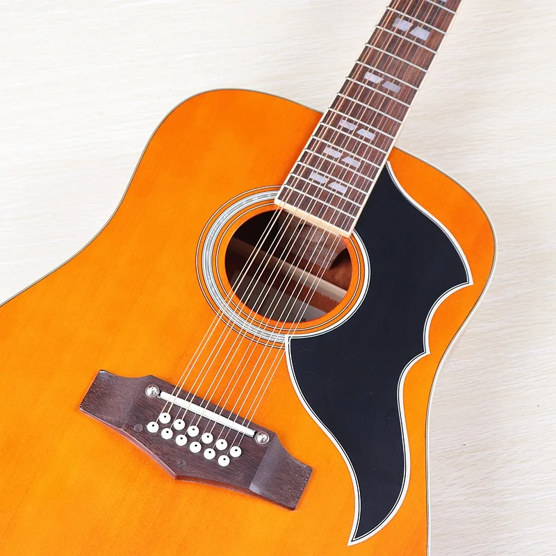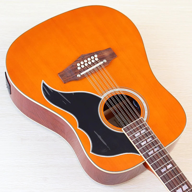 Высококачественная акустическая гитара 12 струн оранжевого цвета, полноразмерная 41 дюймовая народная гитара, глянцевая полноразмерная Еловая древесина
