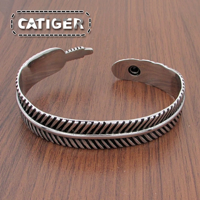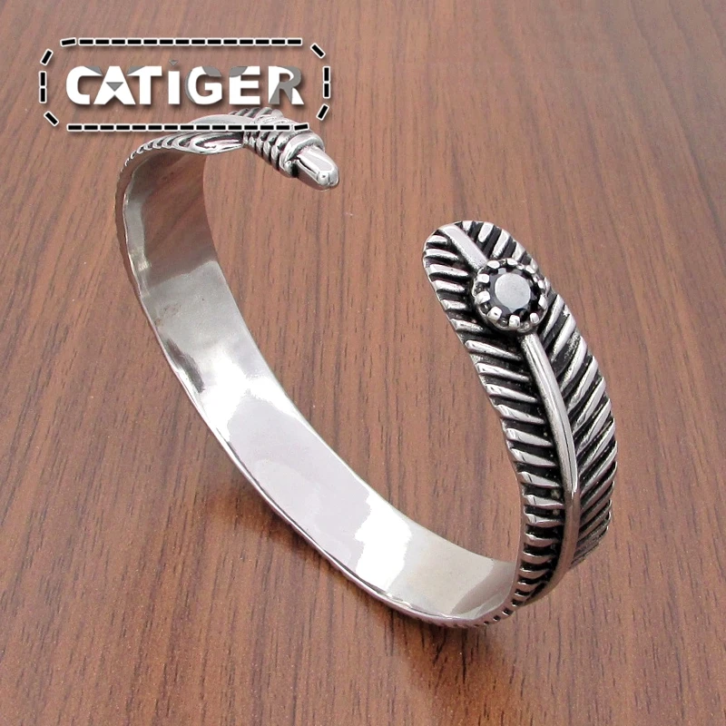 Панк 316L нержавеющая сталь циркон перо манжета браслет