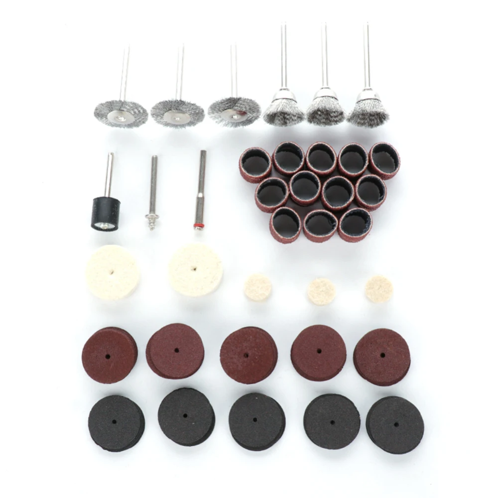 -Отрезать колеса для нарезки и резки большинства цветных металлов, дерева и пластика. Щетиная щетка для снятия заусенцев, светильник для очистки и полировки серебра и ювелирных изделий.