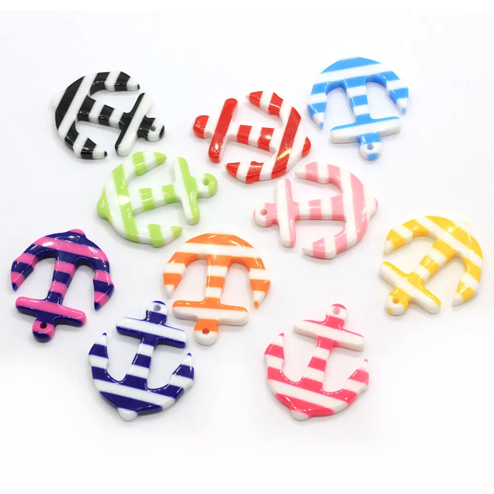 Mix Colors Stripe Anchor Charms Nautical Sailor Resin Flatback Cabochon For DIY Jewelry Craft Decoration