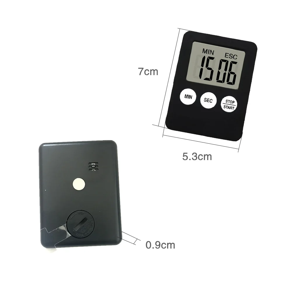 Цифровой кухонный таймер небольшого размера, размер: 7*5,3*0,9 см, это хороший инструмент для приготовления пищи обратный отсчет времени, при этом максимальная 99 минут 59 секунд, чтобы установить, когда время истекает, звук будет напоминать вам.