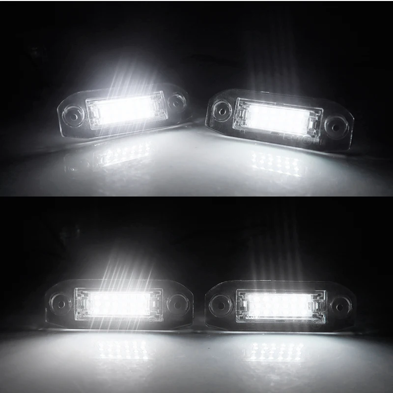 В комплекте одна пара (левая/правая сторона) полноразмерных светодиодных ламп для номерного знака в сборе, питание от 18 супер ярких ксеноновых светодиоды Белого Свечения Светодиодных диодов Цветовая температура: 6000K-6500KLED Напряжение: 12 В постоянного тока Материал крышки: пластик Без ошибок: со встроенным контроллером Canbus не будет кодов ошибок Прямая замена, простая установка plug and play Эти новые суперярсветодиодный светодиодные лампы высокой мощности для номерного знака мощностью 3 Вт в сборе как минимум в 3 раза ярче заводских и придадут вашему автомобилю современный и роскошный внешний вид с повышенной безопасностью в ночное время
