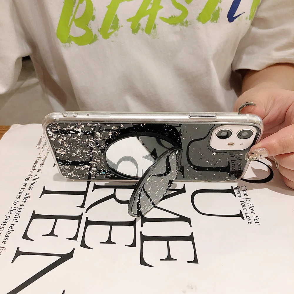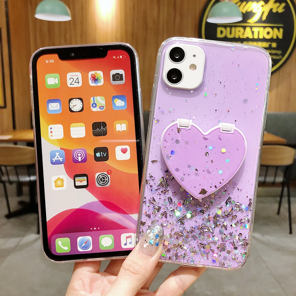 LOVECOM блестящий чехол для телефона с сердцем и блестками для iPhone 11 Pro Max XR XS Max 6 7 8 Plus X Мягкая эпоксидная задняя крышка с подставкой подарки