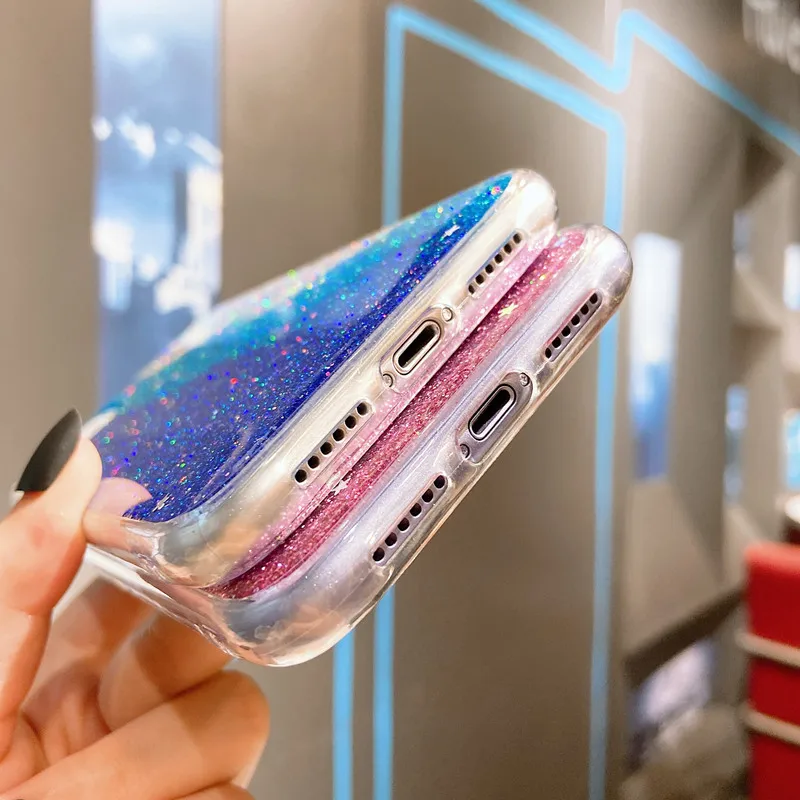 Особенности:1. Модный сверкающий Блестящий Мягкий чехол для телефона из ТПУ с блестящей пудрой, Пляжная задняя крышка