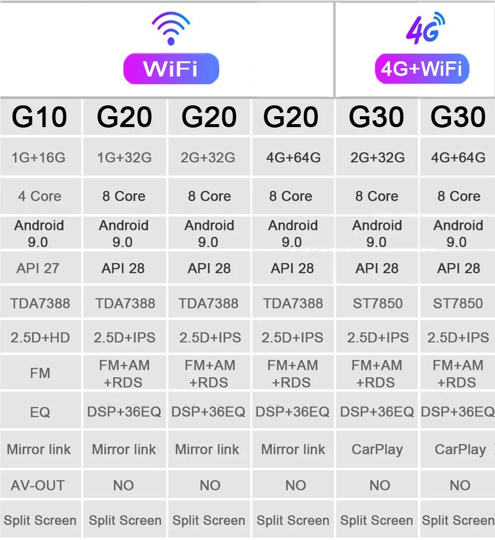 Посылка включает в себя: 1 Автомобильный Android GPS медиаплеер 2 usb кабеля 1 Антенна gps 2 кабеля RCA 1 Кабель-адаптер 1 CANBUS Два кронштейна для кондиционирования воздуха Общая проблема: Могу ли я слушать музыку или радио при использовании навигации? Да, вы можете слушать радио или музыку во время использования навигационной системы. Устройства Carlaoer используют уникальную технологию, которая позволяет слушать музыку во время использования навигационной системы. Примечание: 1. Пожалуйста, обратите внимание на модель и год при заказе; Пожалуйста, проверьте, соответствует ли центральная консоль инструкции (если вы не можете подтвердить, пожалуйста, свяжитесь с онлайн-службой поддержки клиентов, чтобы предотвратить ошибки при покупке) 2. Продукт имеет слот SD и разъем USB Его популярное название-система dvd-плеера Android, но элемент не имеет возможности DVD/CD 3. Есть 3 версии по ссылке: версия G10, версия G20 и версия G30. Покупатели должны обратить внимание на покупку перед покупкой. Если вы не знаете информацию о функциях продукта, пожалуйста, свяжитесь со службой поддержки клиентов, чтобы предотвратить неправильный выбор. 4. Требуется слот для sim-карты, пожалуйста, приобретайте версию G30. 5. Требует 8-ядерный + DSP + 36EQ + RDS + IPS функция, для того, чтобы оформить покупку, G20 версия и G30 версия 6. Пожалуйста, не оставляйте нам плохие комментарии и споры, прежде чем обращаться к нам. Если у продукта есть какие-либо проблемы, пожалуйста, сначала свяжитесь с нами, мы поможем вам решить проблему. Спасибо!