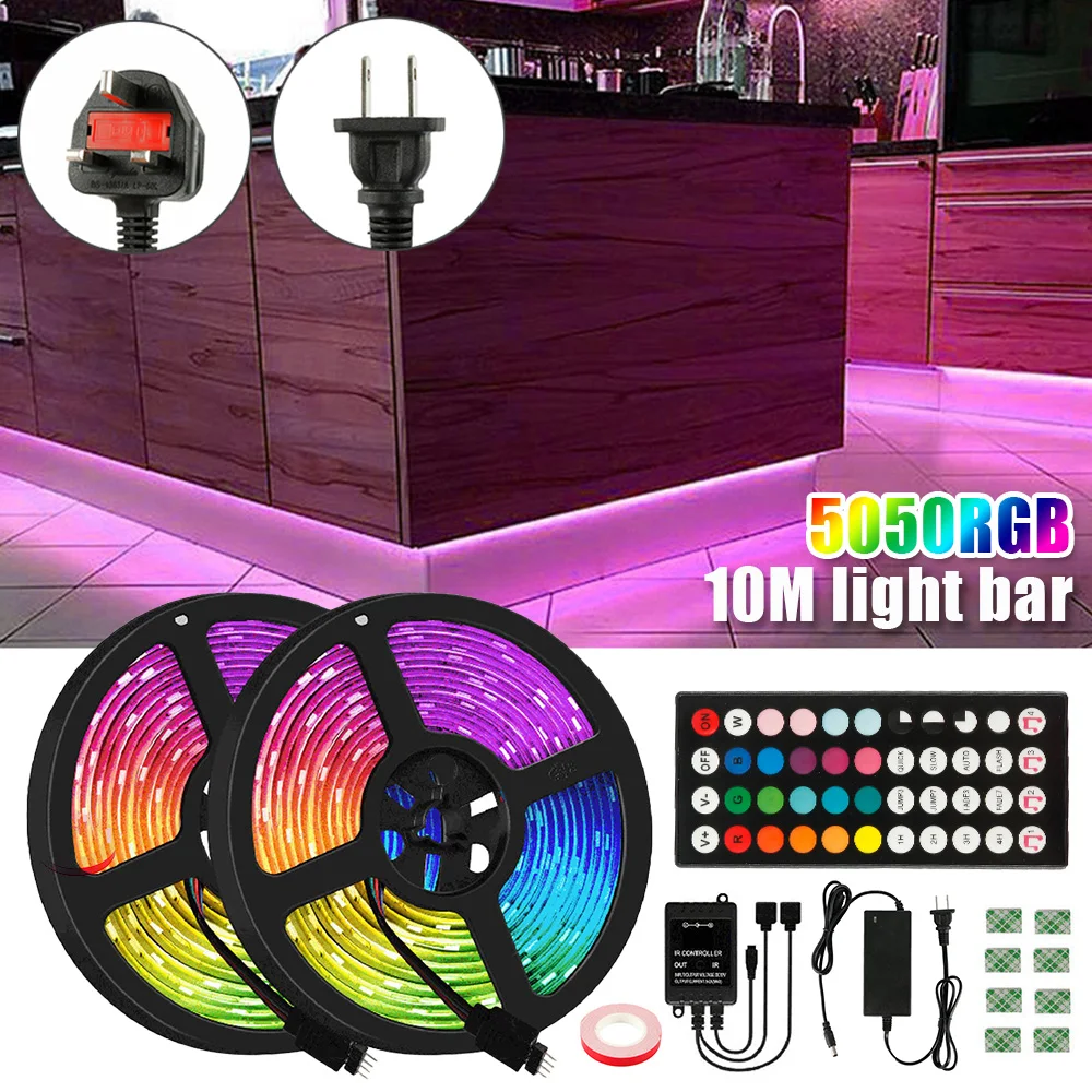 LED Strip 12V Ribbon LED Lights Strip RGB Tape Waterproof SMD 5050 Flexible 10M Diode Tape LED Light for Room+Adapter plug
