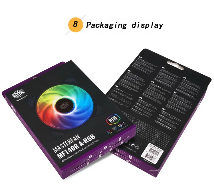 Особенности: -Адресуемые цвета RGB Прошел ASUS Aura Sync, MSI Mystic светильник Sync, ASRock Polychrome Sync Сертификация -С звукопоглощающей резиновой прокладкой -Сочетание реактивного двигателя и дизайна лопастей вертолета обеспечивает хорошее статическое давление без ущерба для воздушного потока -Умный датчик вентилятора для защиты от блокировки Характеристики продукта: Бренд: Cooler Master Название продукта: MasterFan MF140R ARGB Номер товара: R4-140R-15PC-R1 Размер вентилятора (Длина X Ширина X высота): 140x140x25 мм Тип подшипника: винтовка Скорость: 650-1500 об/мин ± 10% Объем воздуха: 90 CFM ± 10% Давление воздуха: 1,6 мм H2O Уровень шума: 33,5 dBA MTTF: 280000 часов Номинальное напряжение RGB: 5 В постоянного тока RGB Номинальный ток: 0.12A Номинальный ток: 0.25A Номинальное напряжение: 12 В постоянного тока Безопасный ток: 0.37A Вентилятор интерфейсом RGB: 5V 3-контактный Вентилятор интерфейс питания: 12V 4-контактный разъем (ШИМ) Вес: 142 г
