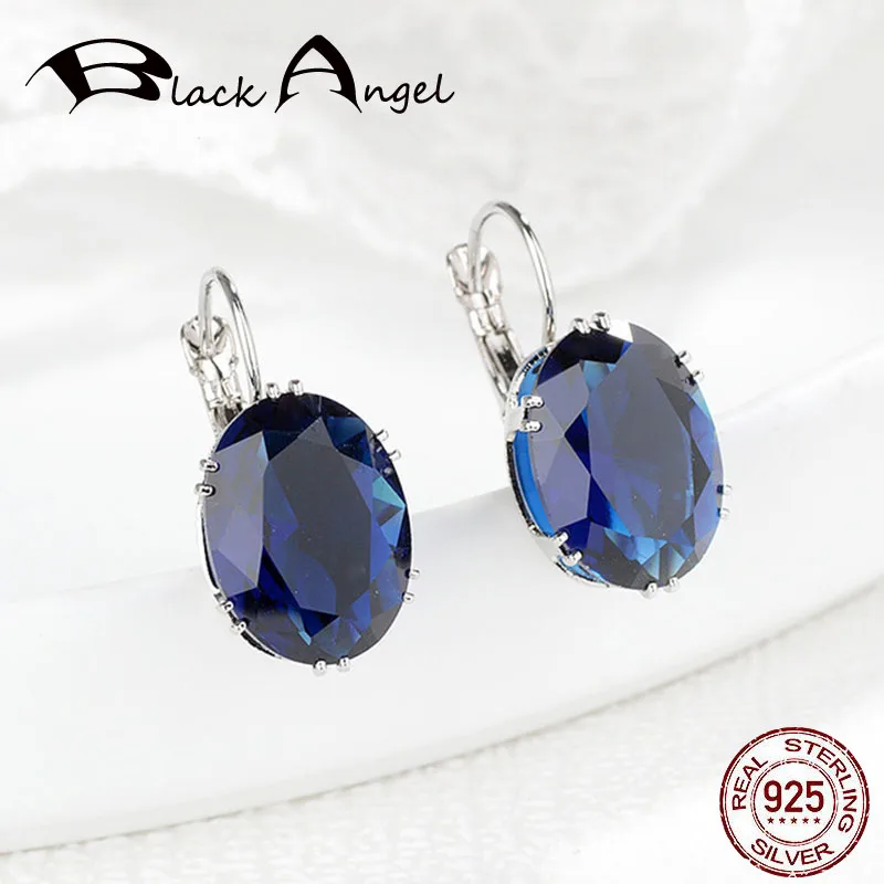 Черный ангел, Элегантный Королевский сапфир, аметист, драгоценный камень, клипсы, серьги из стерлингового серебра 925 пробы, ювелирные изделия для женщин, оптовая продажа, Прямая поставка