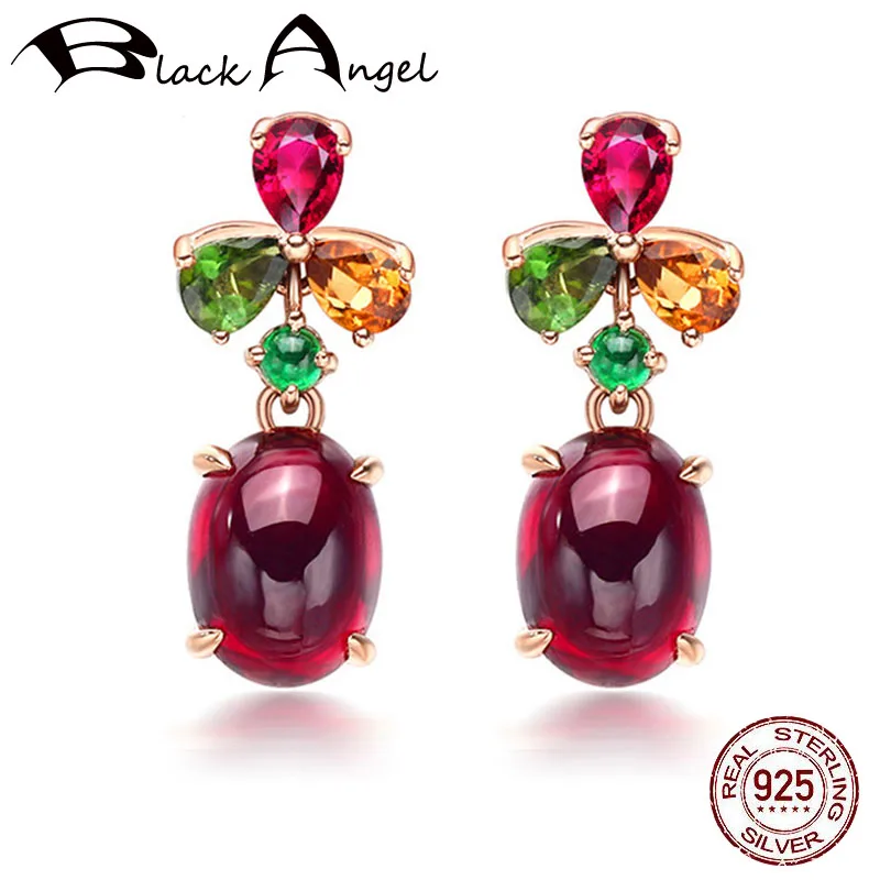 Черный Ангел Роскошные красные гранатовые турмалиновые серьги из стерлингового серебра 925 пробы разноцветные драгоценные камни Висячие серьги для женщин Свадебные подарки