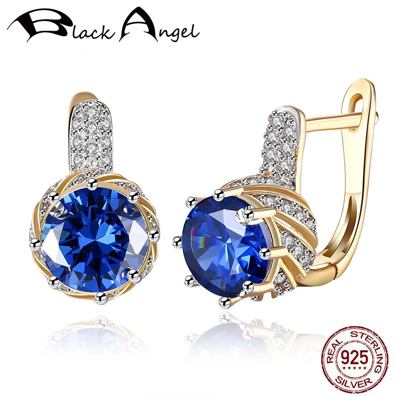 Женские серьги-гвоздики с голубым драгоценным камнем BLACK ANGEL, серьги-гвоздики из серебра 925 пробы, свадебный подарок, 2020