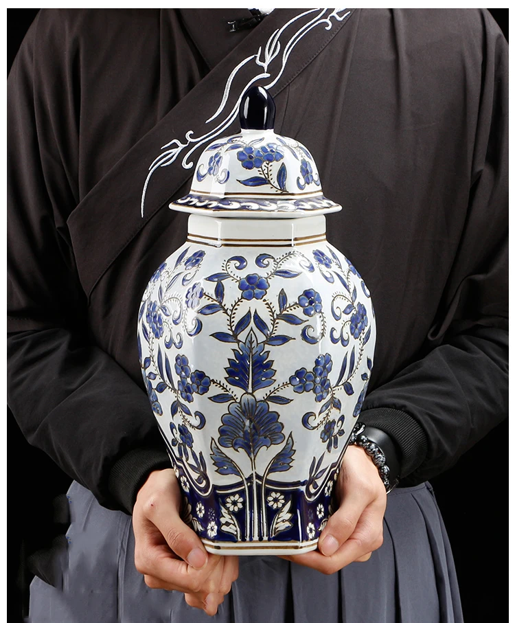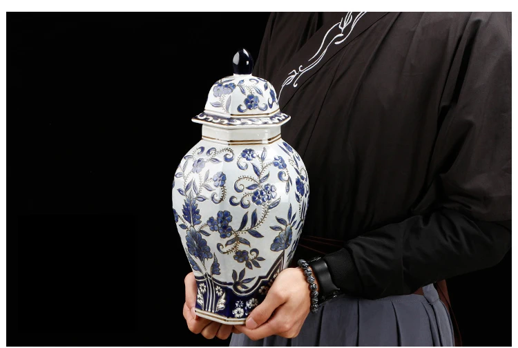 Винтажная Имбирная банка с синим белым цветком, китайская ваза с крышкой, идеальный подарок для друзей, Семейные декоративные вазы