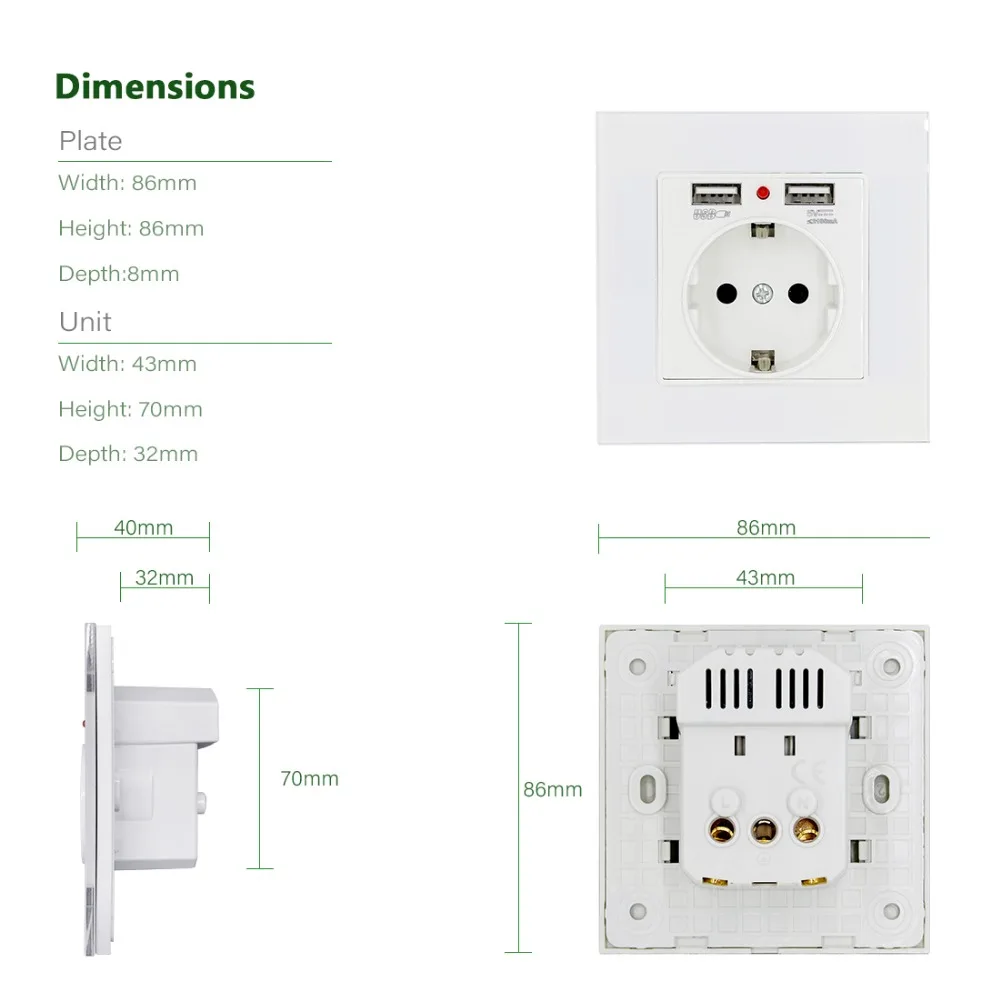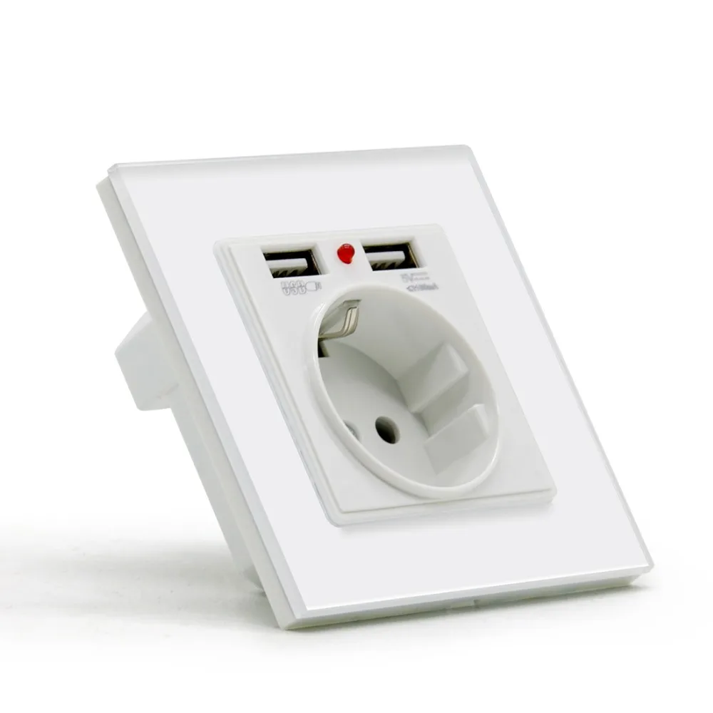 BSEED настенная розетка стандарта ЕС с двойным USB настенная декоративная розетка двойная черная Золотая белая стеклянная панель