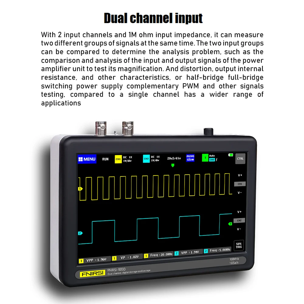 1013D-это полнофункциональный, очень практичный и экономичный двухканальный плоский осциллограф для обслуживания и индустрии исследований и разработок.