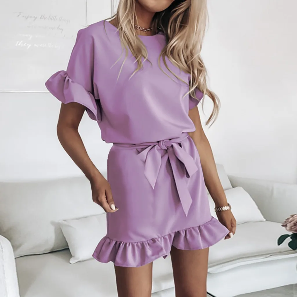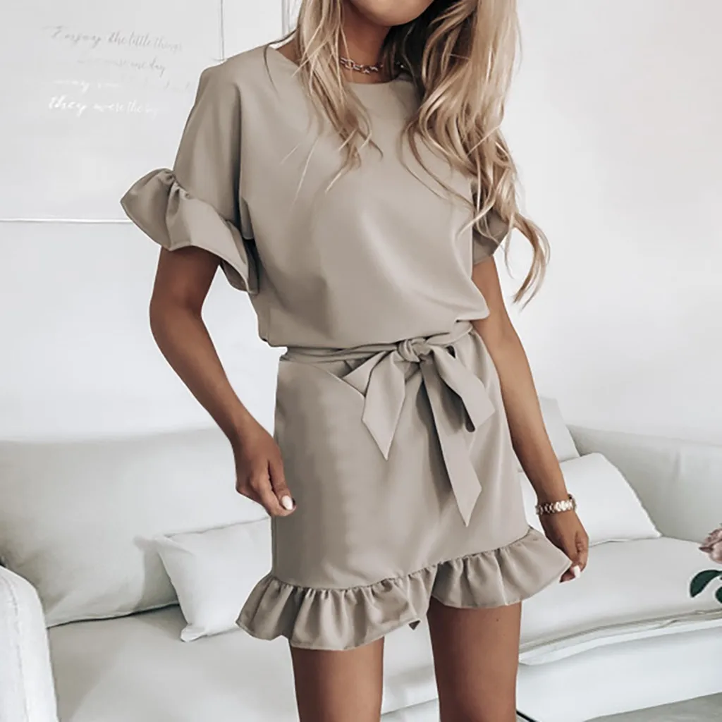 Модные женские повседневные свободные домашние спортивные однотонные платья с коротким рукавом