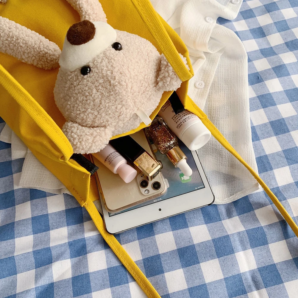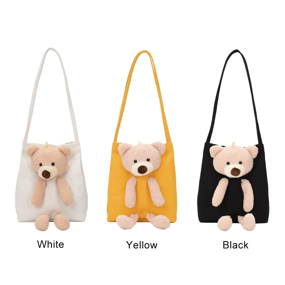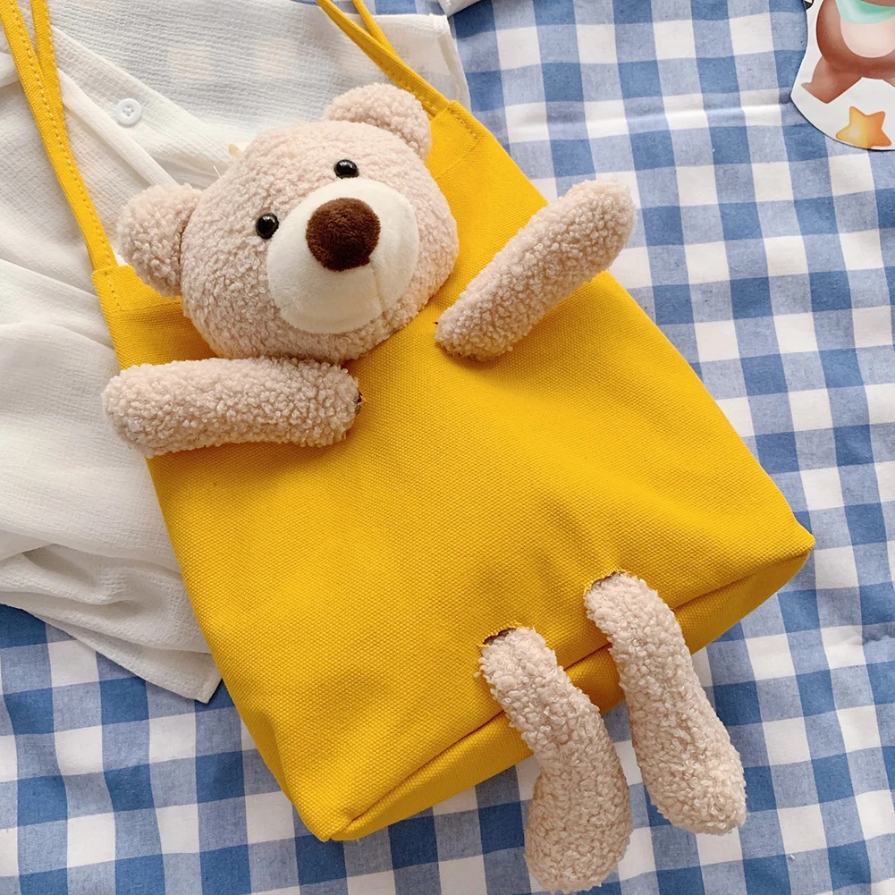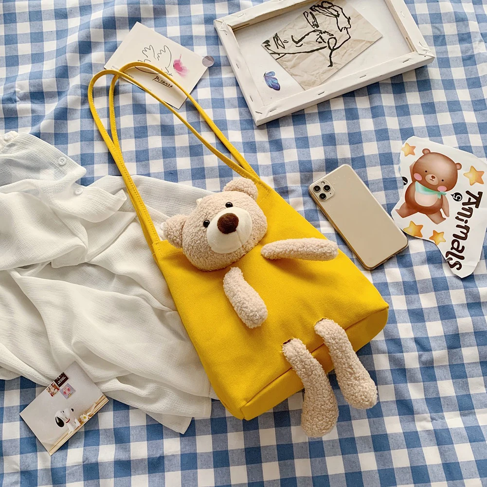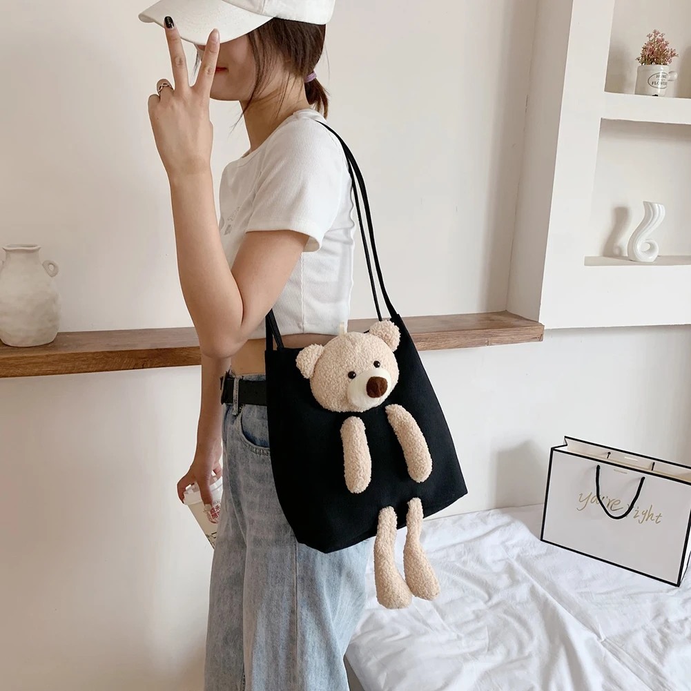 Холщовая женская сумка с милым мультяшным медведем, женская сумка на плечо, Повседневная сумка для покупок, Повседневная сумка-кошелек