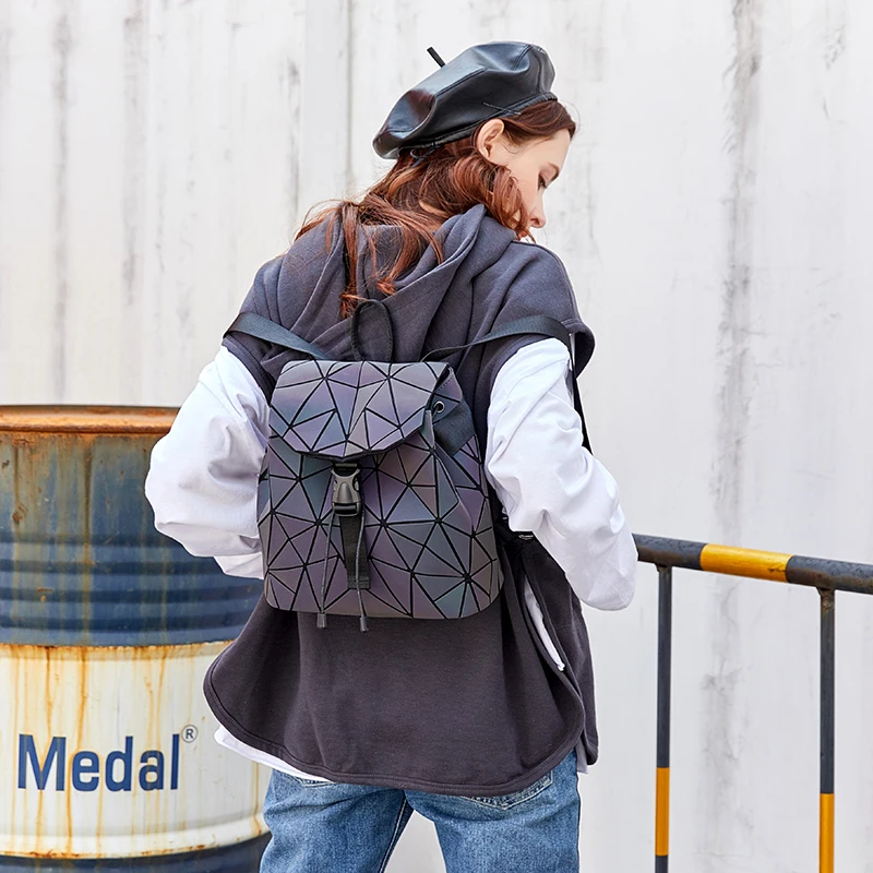 Рюкзак женский светящийся на плечо, с треугольными блестками