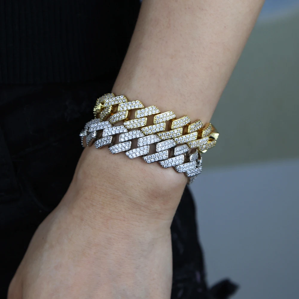 Ледяная девушка ювелирные изделия 15 мм ширина 5A cz кубический цирконий геометрические кубинские звенья цепи хип-хоп шикарные кубинские женские браслеты