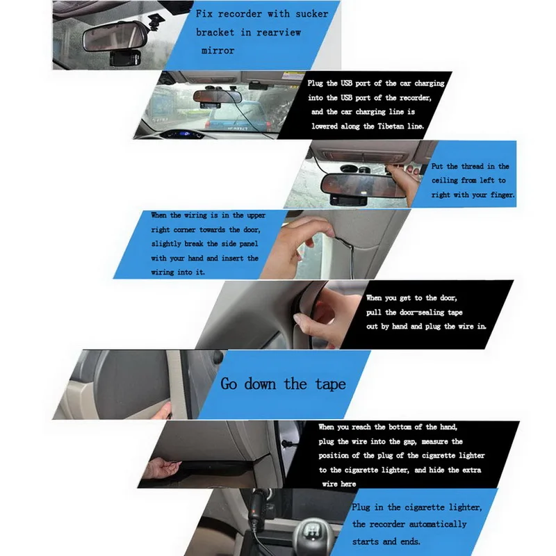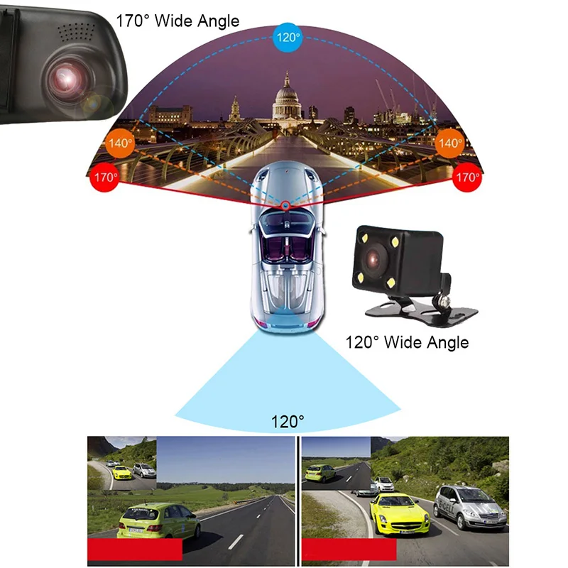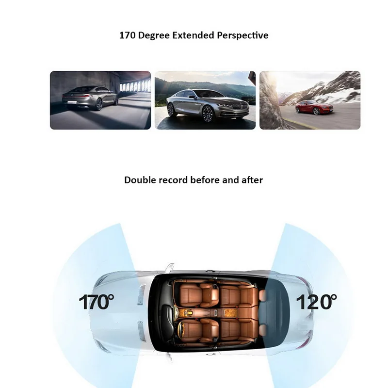 5. Видеорегистратор с двойным объективом: фронтальная и тыловая камера одновременно захватывают передний (170 °) и задний пассажирский салон (120 °) в прозрачных деталями на двойном 1920x720P.