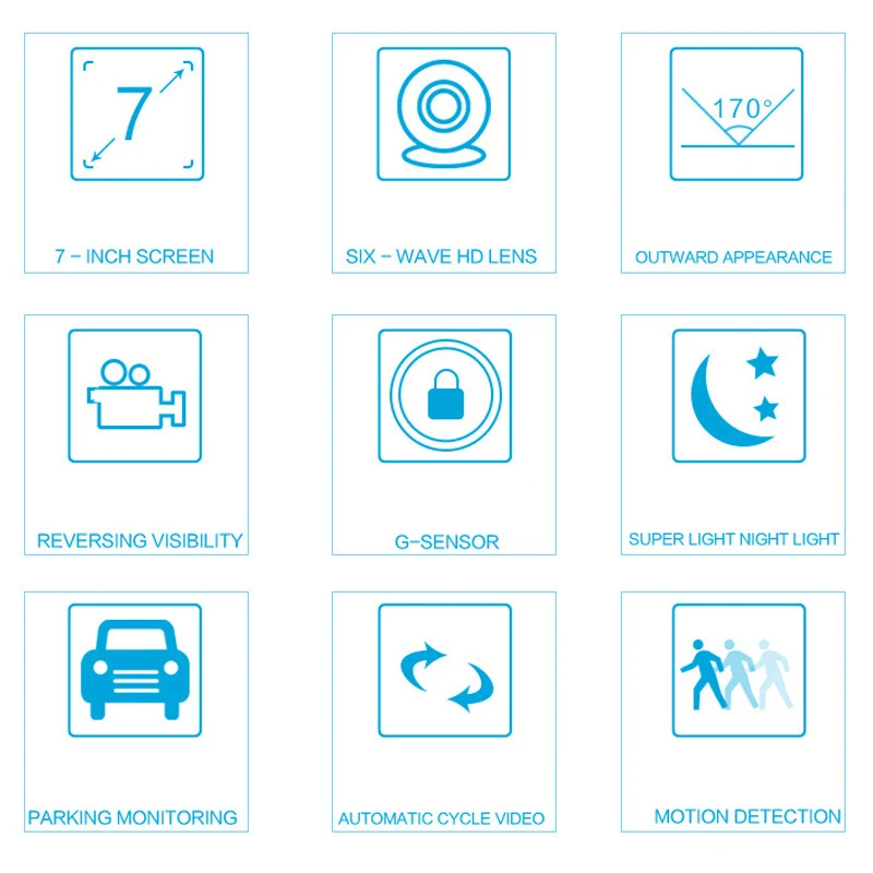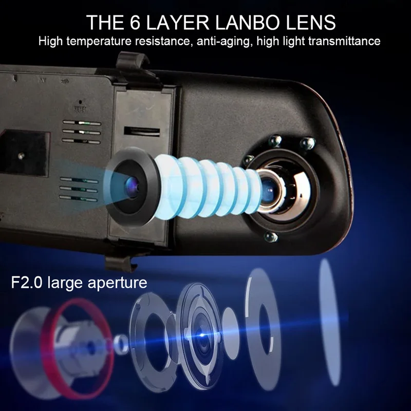 1. Видеорегистратор full HD 1080P: Синхронная запись с объективом FHD с супер высоким разрешением 1080P и большим ЖК-экраном 7 дюймов обеспечивает более четкое видео и изображения.