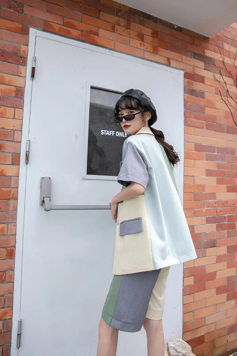 Женский однобортный Блейзер za свободный блейзер в клетку с отложным воротником и