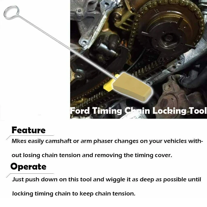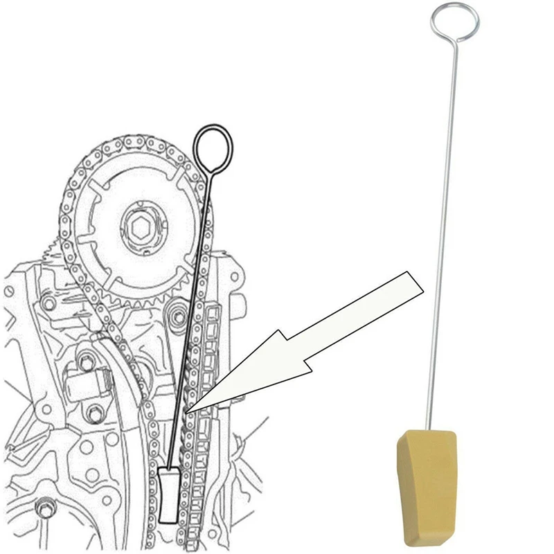 2. Конец клина устойчив к дэ от цепи синхронизации. И стержень позволяет Клину получить достаточно глубокий. С помощью этого инструмент для натяжения цепи ГРМ, это делает легким распределительного вала или cam phaser изменения на вашем автомобиле без потери натяжения цепи и снятия крышки ГРМ.