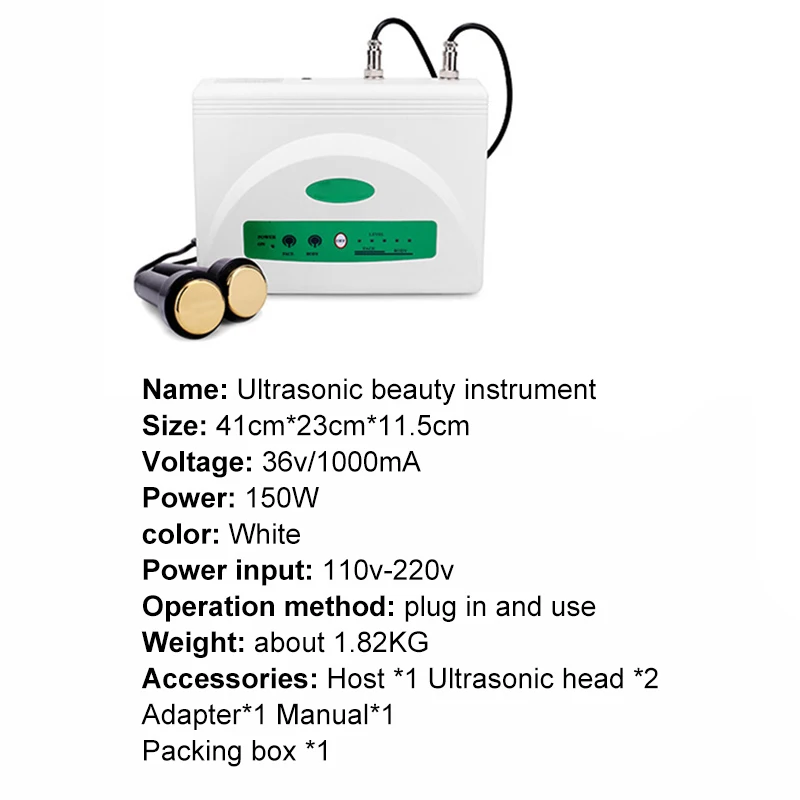 Аксессуары: Основной блок * 1, титановая ультразвуковая головка * 2, адаптер * 1, руководство по эксплуатации * 1, упаковочная коробка * 1