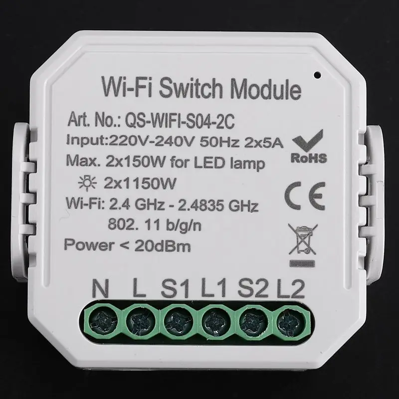 Максимальная нагрузка на напряжение этого модуля переключателя составляет 220-250вольт и 2*5 ампер, которые могут управлять различными видами света и приборов.