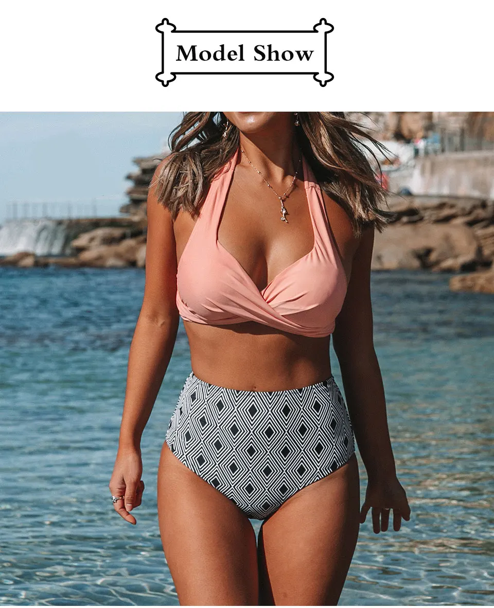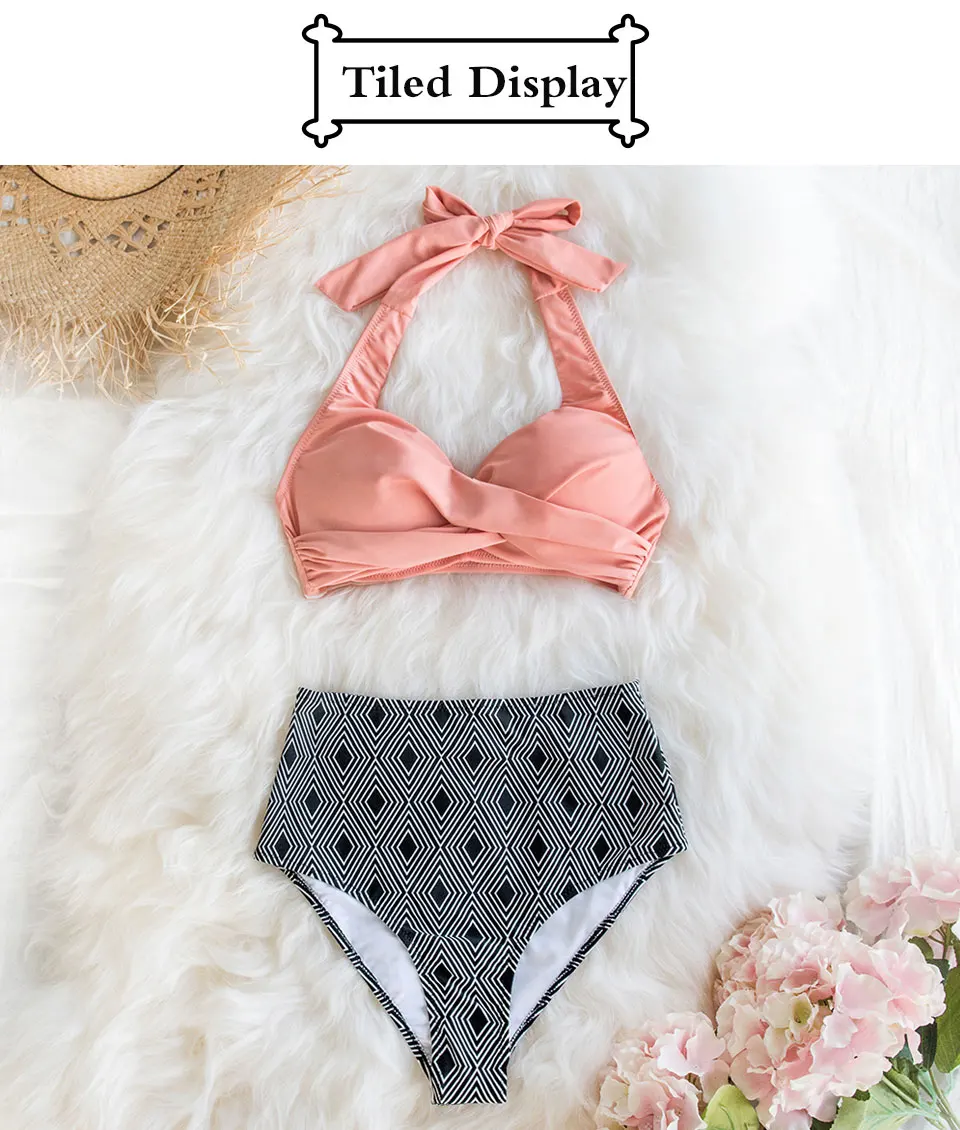Женский раздельный купальник-бикини перекрученный пуш-ап с цветочным принтом на