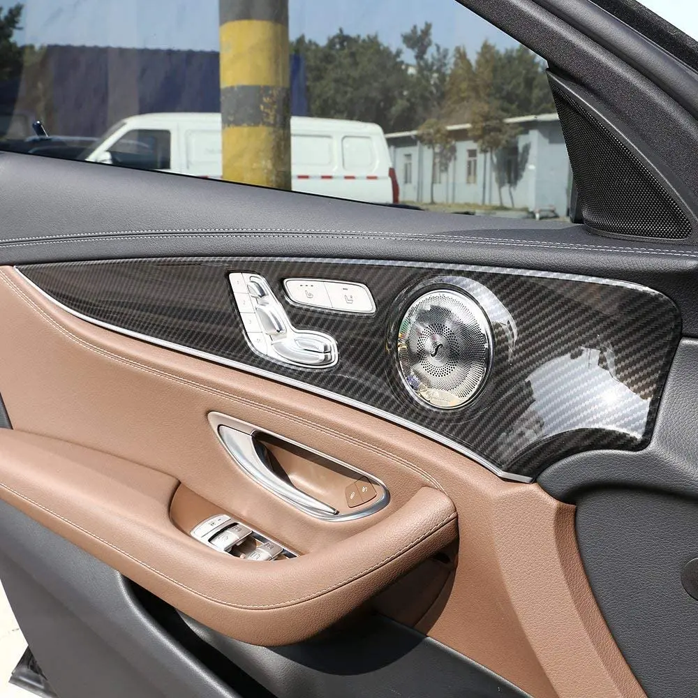 ABS Хромированная декоративная панель для внутренней двери планки для E класса W213 E200l E300l 2016-2018 углеродный глянец Черный