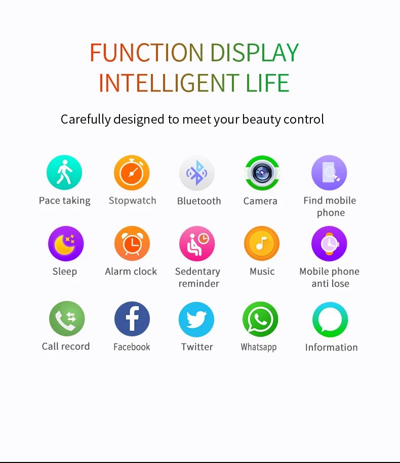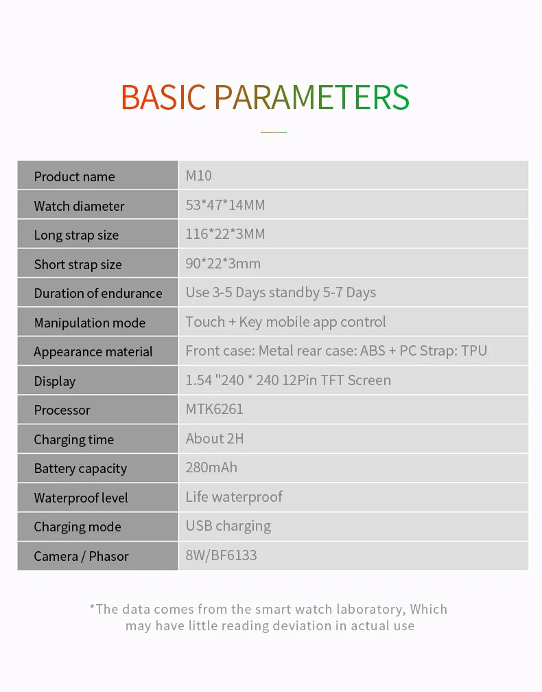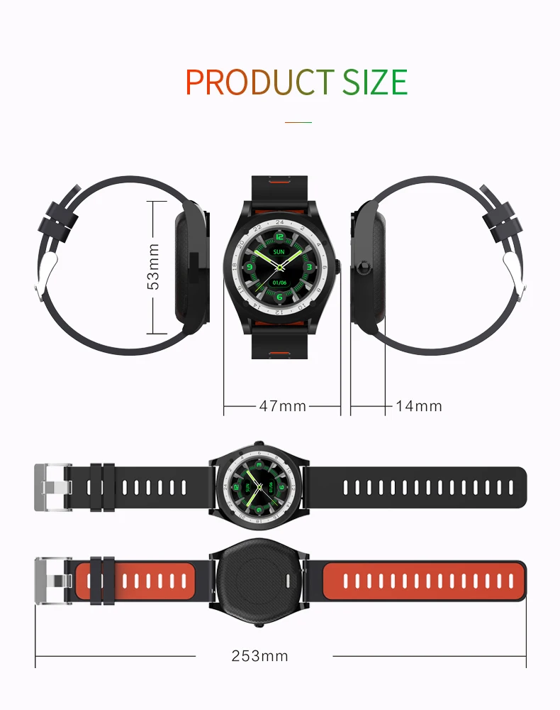 Основные функциональные характеристики часов: Водонепроницаемость IP68, шагомер, частота сердечных сокращений, сон, сидячие движения, пройденное расстояние, уровень кислорода в крови, кровяное давление, калории, Bluetooth, информация, WeChat, QQ, Facebook, Twitter push. Функция поиска, настройка будильника, напоминание о питьевой воде, интеллектуальное управление жестами, режим «Не беспокоить», режим напоминания, Вибрационный двигатель Другие параметры: Поддерживаемые языки: китайский, английский, французский, немецкий, итальянский, русский, испанский, португальский, чешский, арабский, персидский, турецкий, греческий, иврит Цвет ремешка: оранжевый, черный, черный, красный, красный, черный, синий, черный, зеленый, черный Упаковочный лист: 1 * часы 1 * Руководство по эксплуатации 1 * упаковочная коробка 1 * зарядный кабель