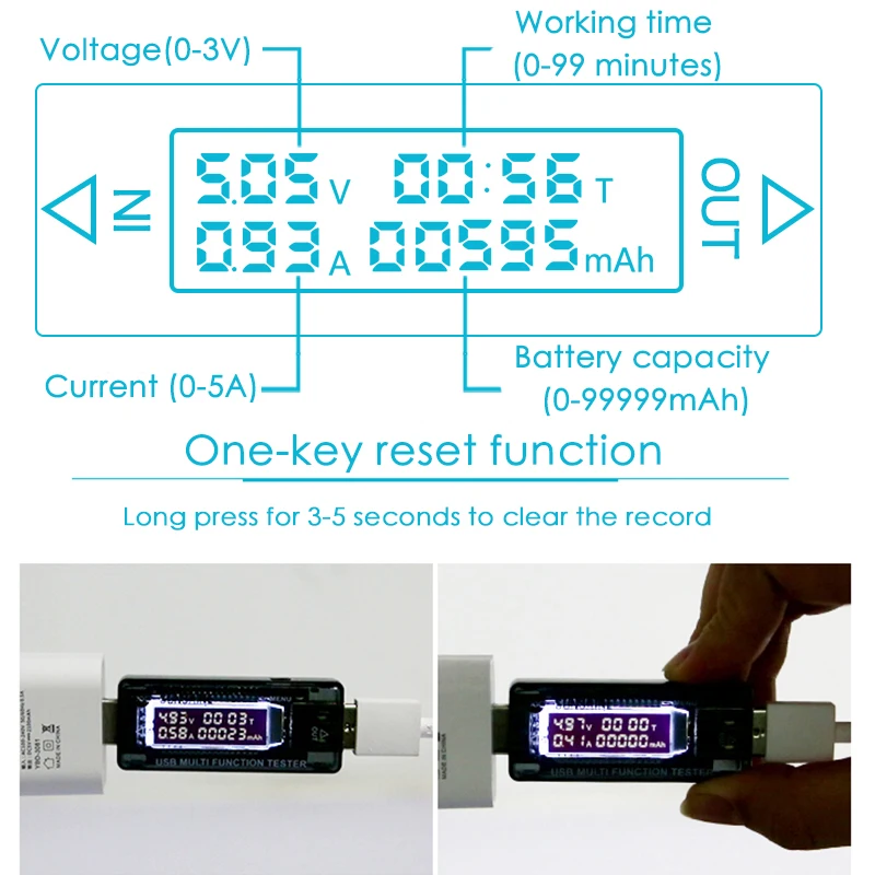 <Диапазон измерения: широко 3-8 В напряжение и 0 a-3a диапазон тестирования тока поддержка с точными показаниями