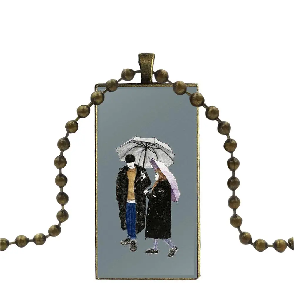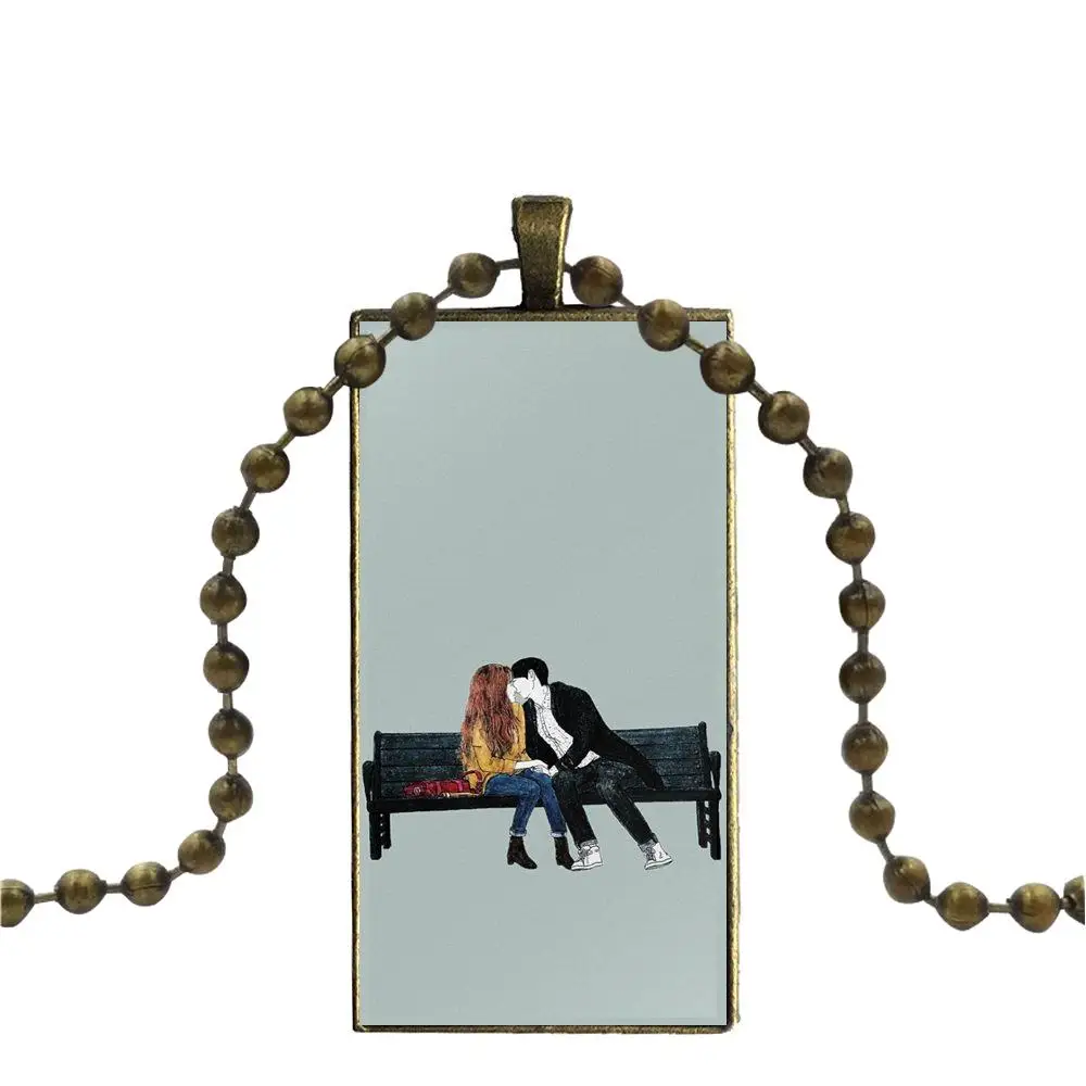 Для девочек, длинное корейское ожерелье-чокер в стиле аниме, стеклянный кабошон, прямоугольное ожерелье, ювелирное изделие бронзового цвета