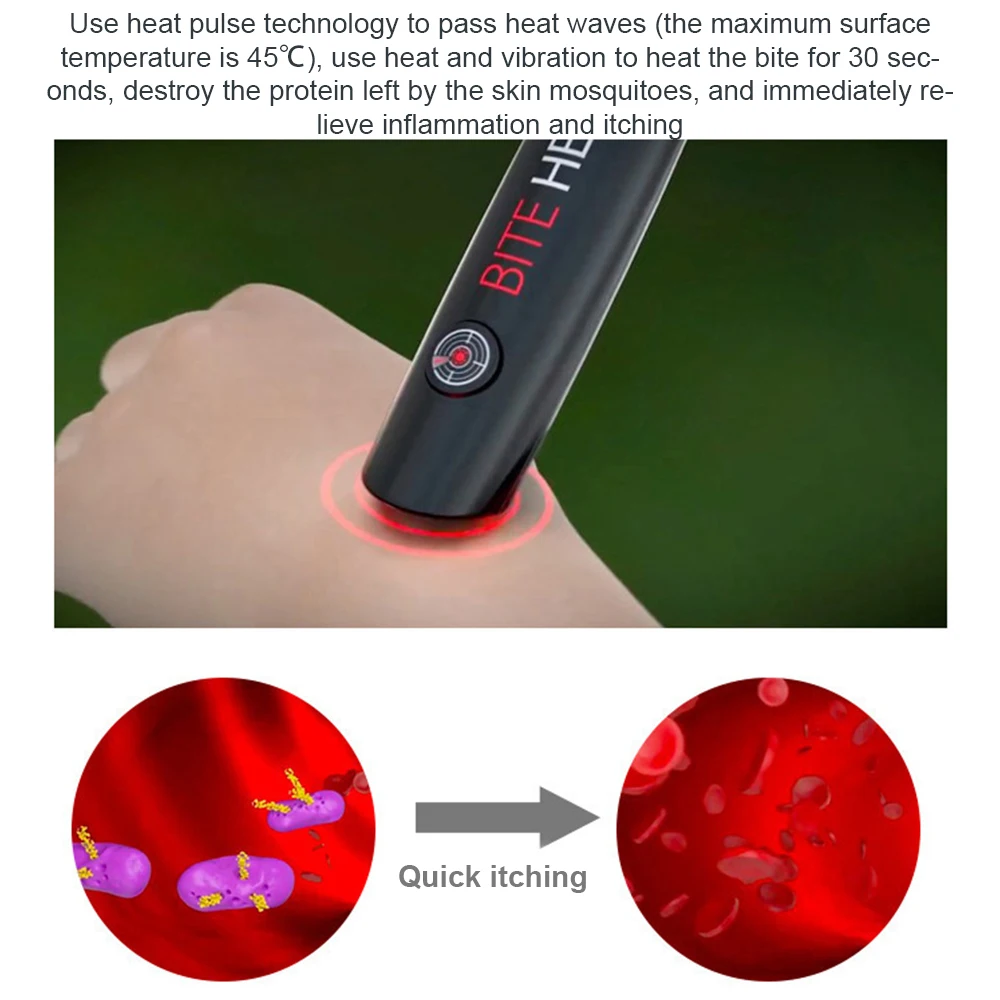Эта ручка для снятия зуда обеспечивает тепло и вибрацию для улучшения кровотока и кровообращения и помогает уменьшить зуд от укусов комаров.