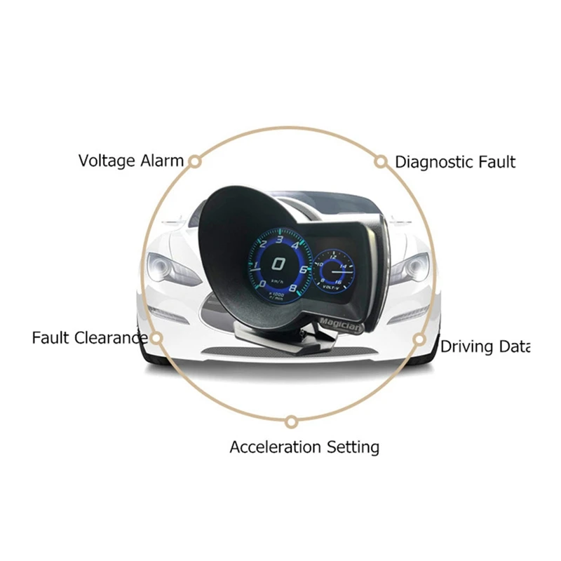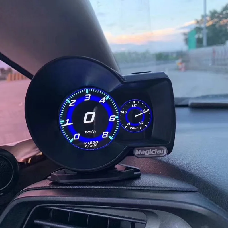 Описание: специально разработан для транспортных средств без спидометра, датчика температуры двигателя, масляного термометра, манометра и расходомера топлива. Может также контролировать и отображать напряжение батареи, напряжение зарядки двигателя, сигнал тревоги о превышении скорости, предупреждение о температуре двигателя. Он может даже считывать поток данных в реальном времени, сканировать и очистить код неисправности.