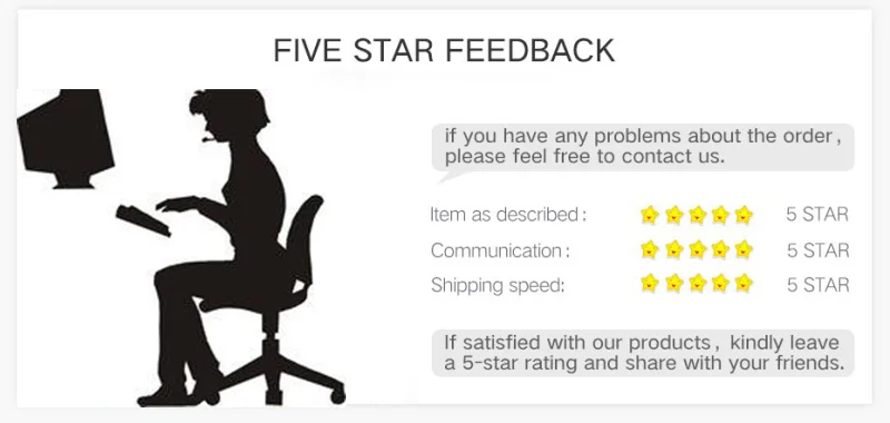 1. Если вы удовлетворены товарами и нашим обслуживанием. Пожалуйста, уделите минуту, чтобы оставить нам подлинные отзывы с 5 звездами. Мы с радостью сделаем то же самое для вас. (Пожалуйста, свяжитесь с нами и свяжитесь с нами. Пожалуйста, найдите минутку, чтобы увидеть цену оставить нам положительный отзыв с 5 звезд. Мы с Вами работаем с клиентами.