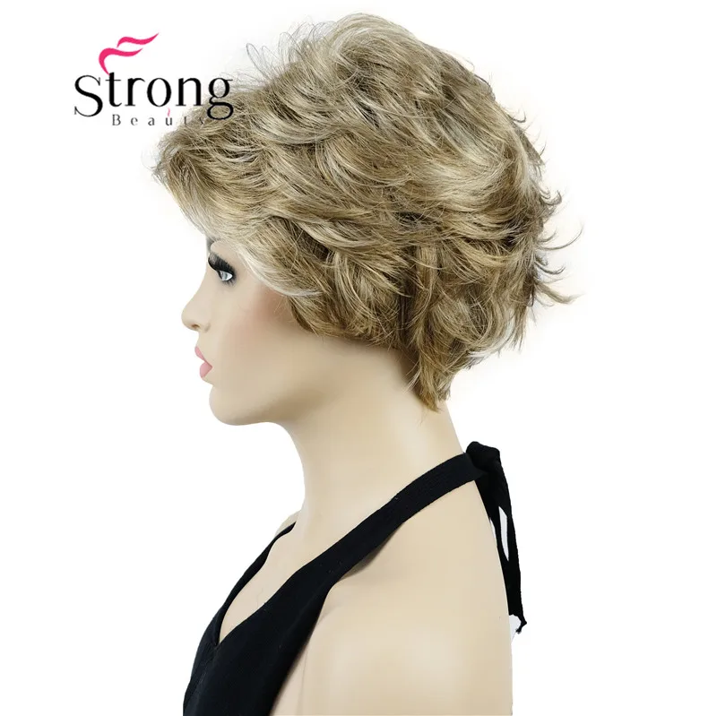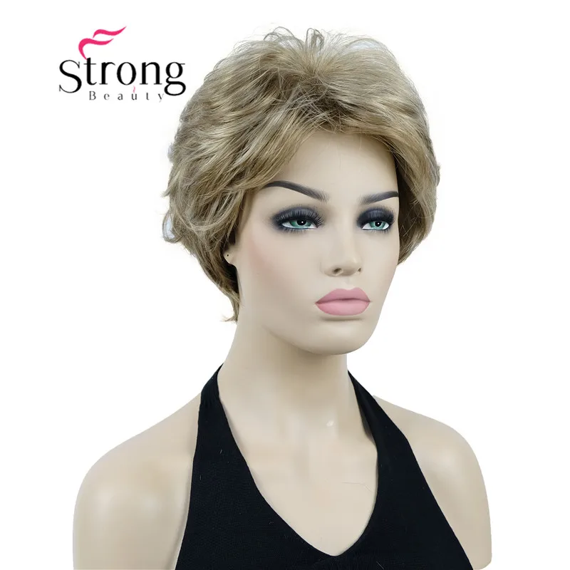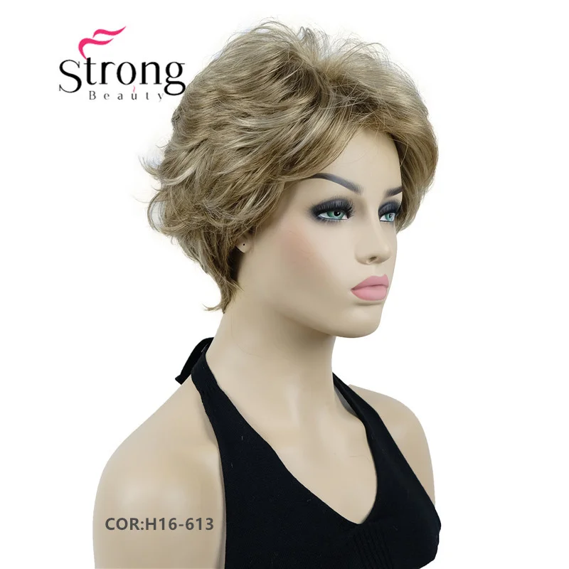 StrongBeauty короткий мягкий слоистый блонд Толстый Пушистый полный синтетический парик модные парики