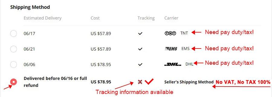 (ДоставкаDHL/TNT может потребоваться оплатить налог, который будет взиматься на таможне страны покупателя, выбирайте только способ доставки продавца, без НДС и налога на импорт.)