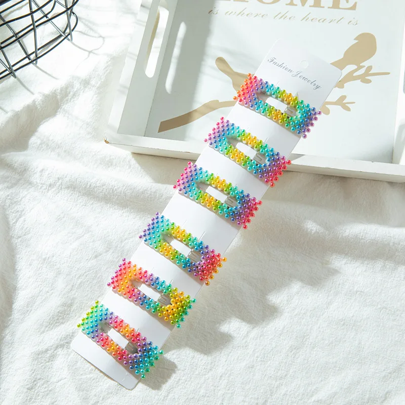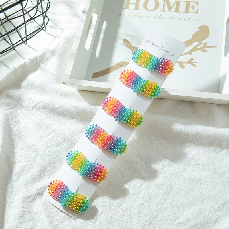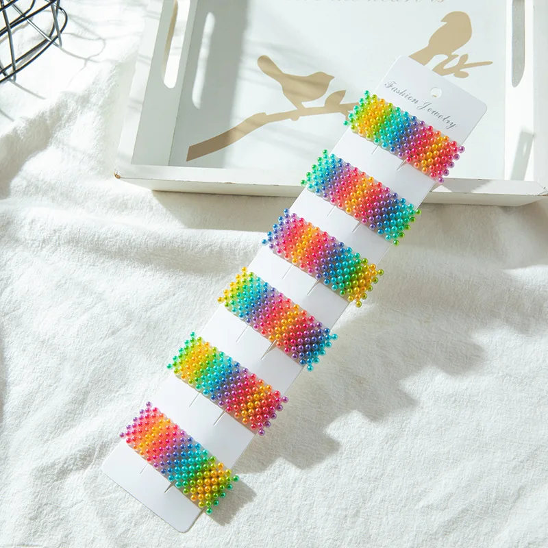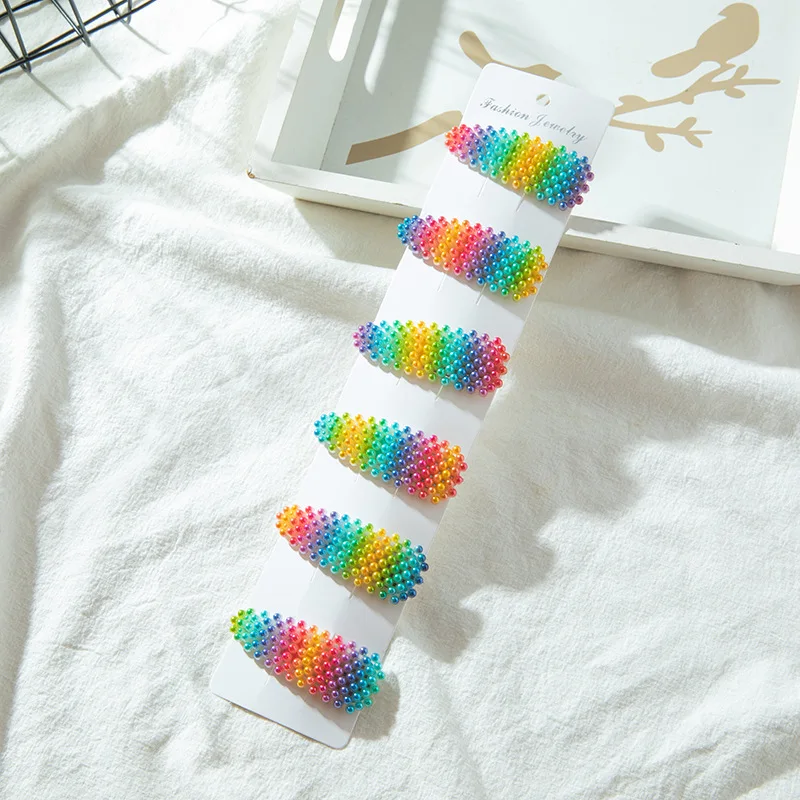 6 шт./компл., радужные цвета, жемчужный бант, Шпилька для детей, мультяшный BB зажим для волос, ободок для волос, аксессуары для волос в Корейском стиле Тип товара: заколки для волос Материал: смола Размер: как на картинке Упаковка: 6 шт./компл. Пол: для девочек