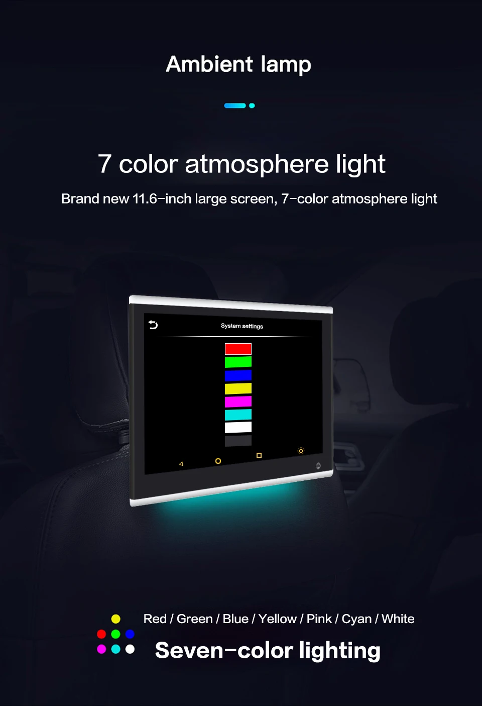 Автомобильный зеркальный экран Miracast 11,6 дюйма, Android-монитор 1920*1080, сенсорный экран 4K, Wi-Fi/Bluetooth/USB/SD // FM/зеркальное отображение подголовника заднего сиденья, развлекательная видео и аудио система