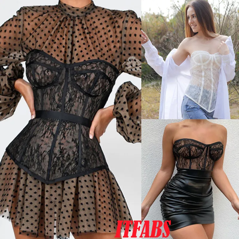 2020 сексуальный женский кружевной сетчатый прозрачный бюстгальтер без бретелек майка с открытыми плечами облегающие бюстье корсеты пуш-ап укороченные топы для клуба