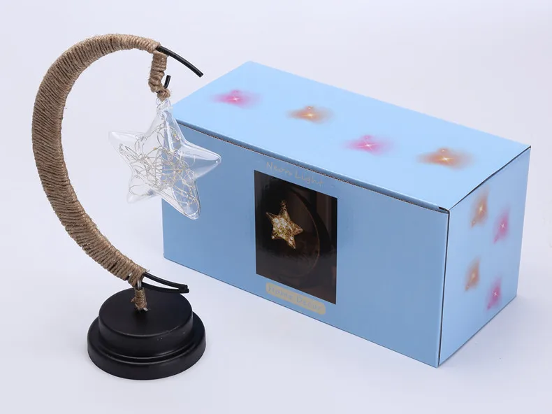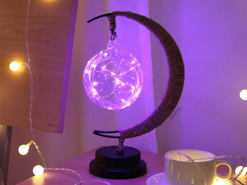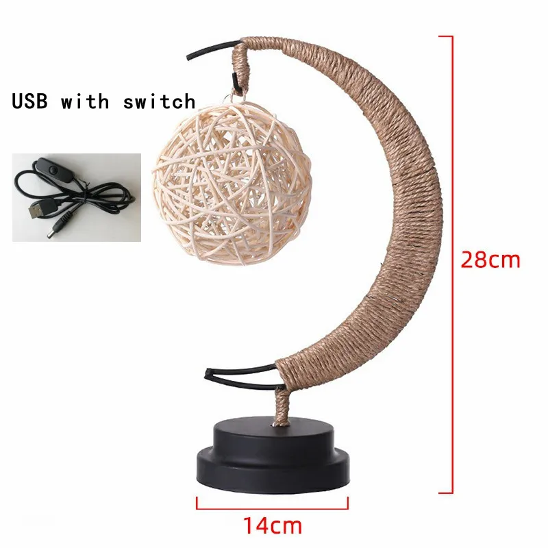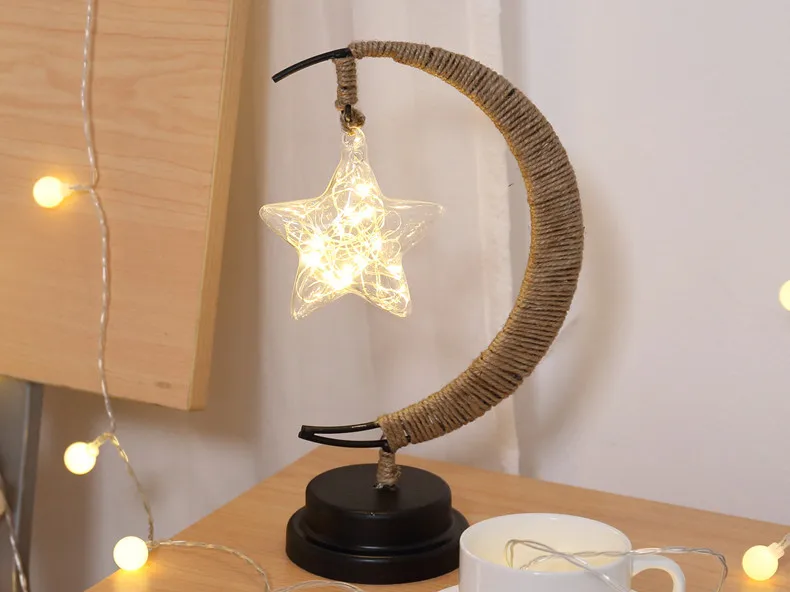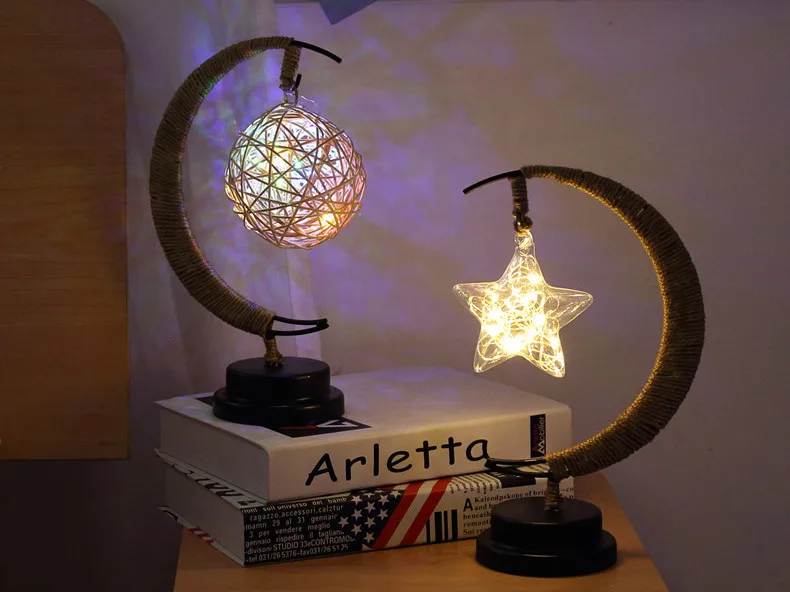 Светодиодная лампа звезды луна светильник ротанговый шар Рождественский светильник s Детский подарок на день рождения ручная работа пеньковая веревка USB кованый железный Ночник светильник