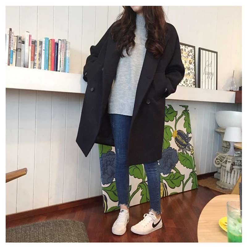 Женское шерстяное пальто YOSIMI элегантное до середины икры красного вина длинная