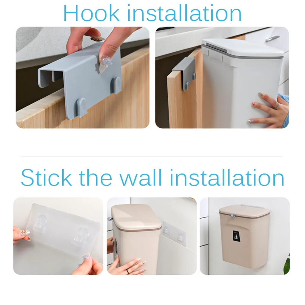 - 9,3 "W x 5,1" D x 11,6 "H. Мусорное ведро можно повесить на кухонную дверь, дверь шкафа, дверь кладовой или в любом другом месте. Толщина двери должно быть меньше, чем 0,95 дюймов (2,5 см), не подходит для подвешивания внутри шкафа.