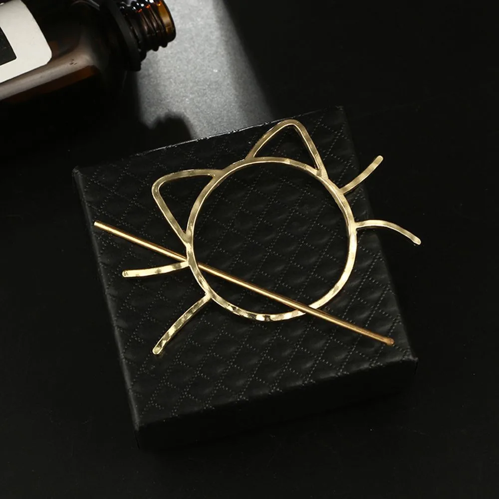 1 шт., корейский, геометрической формы, заколка для волос с котом, милый металлический гребень, Шпилька для волос, шаль, брошь для женщин, девочек, инструменты для укладки