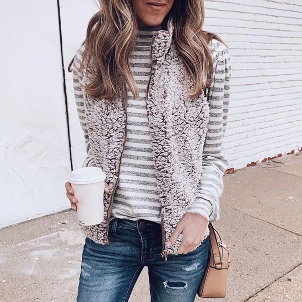 Двухсторонние женские теплые жилеты без рукавов, стеганые повседневные женские флисовые куртки с воротником-стойкой, новинка осень-зима 2019
